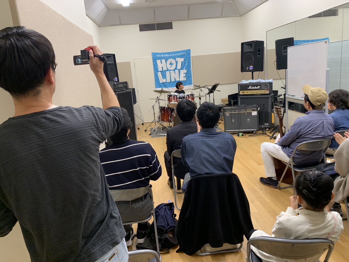 4番手は「shugo_musica」さんです。以前、親子で出演いただきましたが今回はしゅーご君ソロでの演奏!10歳とは思えない堂々とした演奏で3曲もドラムソロで演奏してくださいました。ご家族皆さんで演奏を見に来ていたようで、何が一番緊張したかを聞いたところ演奏よりも途中のMCがとても緊張したとのことでした。近い将来ご友人たちとバンドで出演してくださること楽しみにしてます。