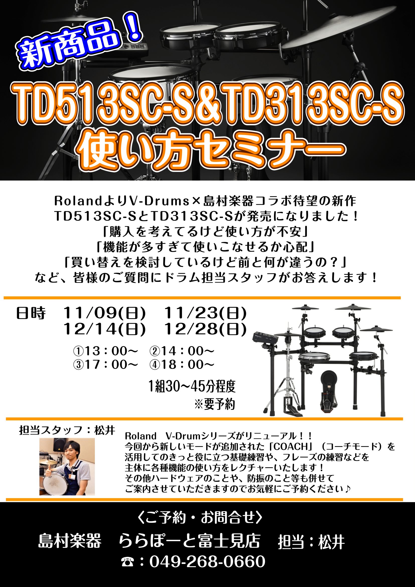 【V-Drums】Roland×島村楽器 コラボ新モデルTD513SC-S/TD313SC-S 発売!!  ららぽーと富士見店 ららぽーと富士見店