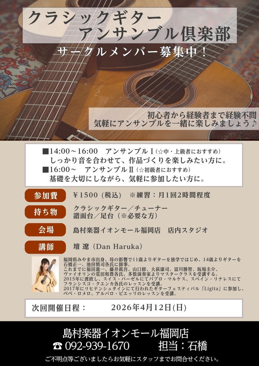 【クラシックギターアンサンブル倶楽部 会員募集中!】