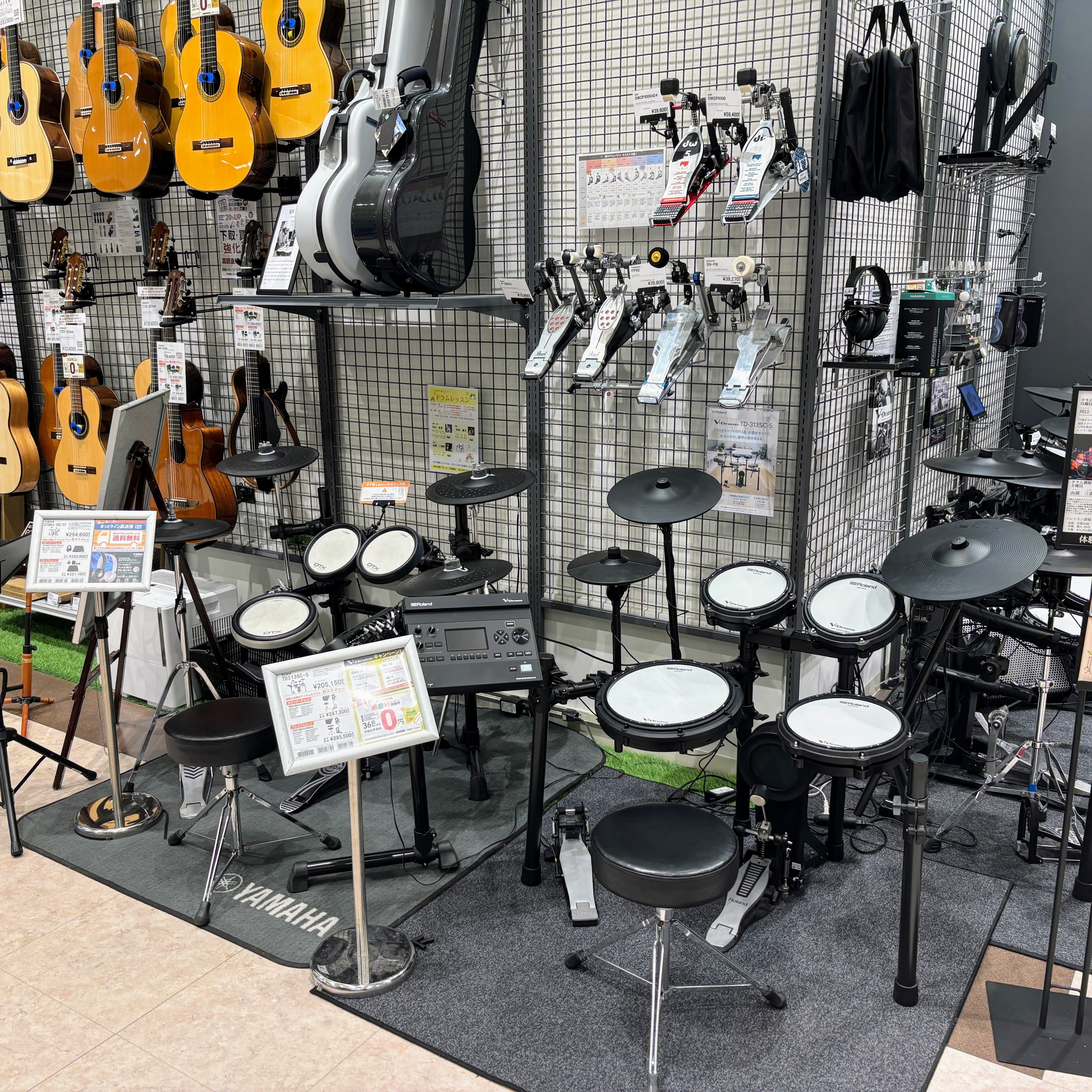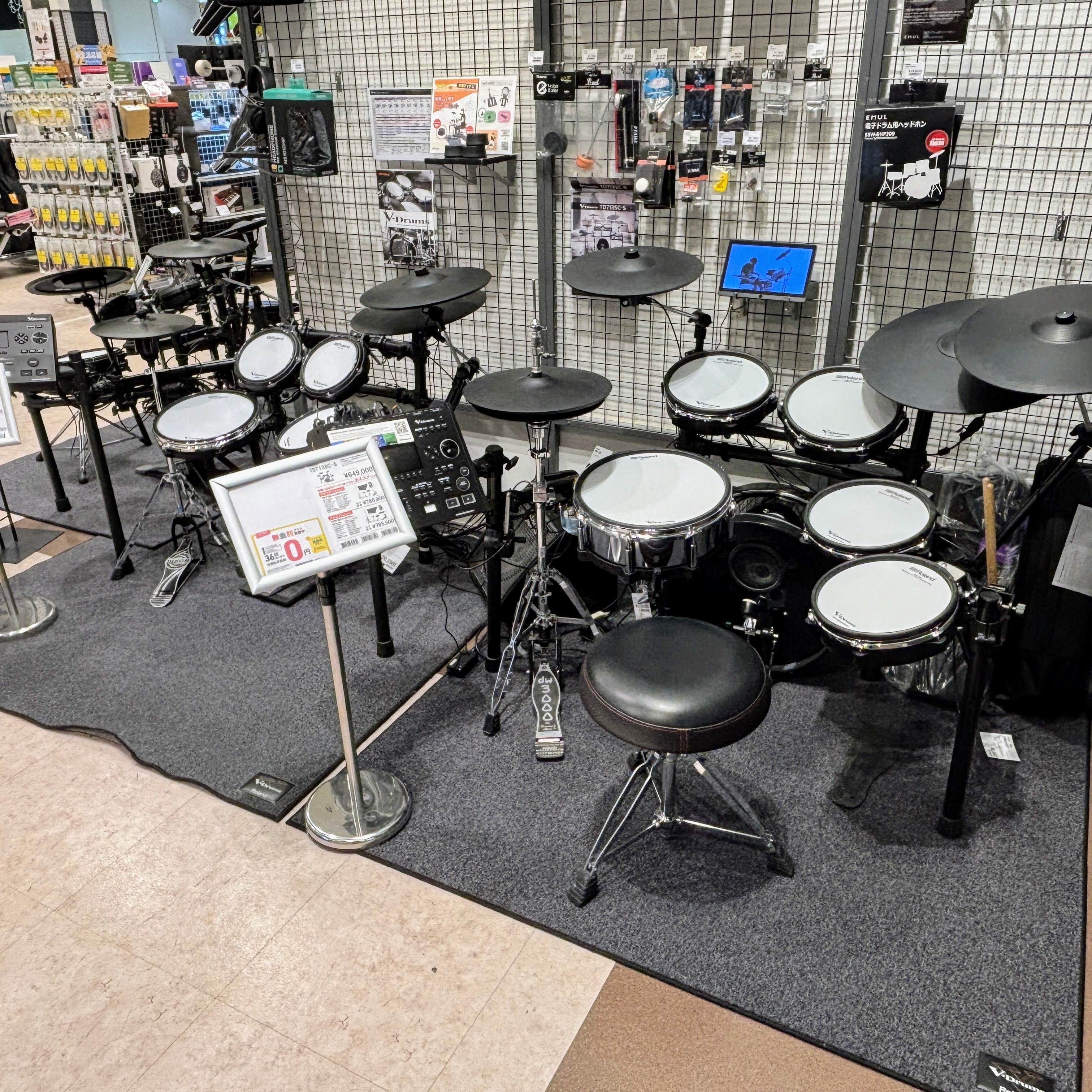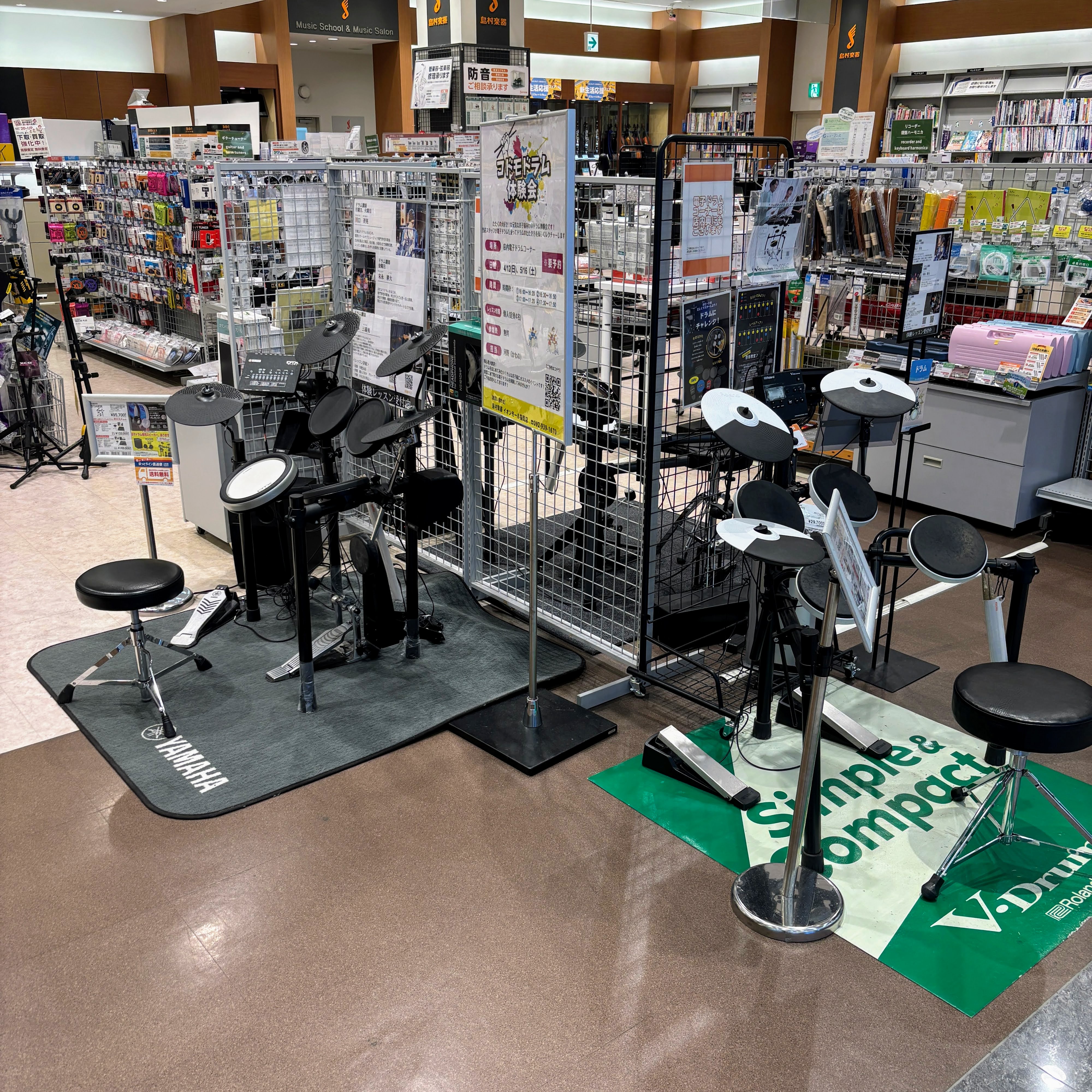島村楽器 イオンモール福岡店 電子ドラムコーナーは広いスペースで、実際に叩いて選んで頂く事ができます!