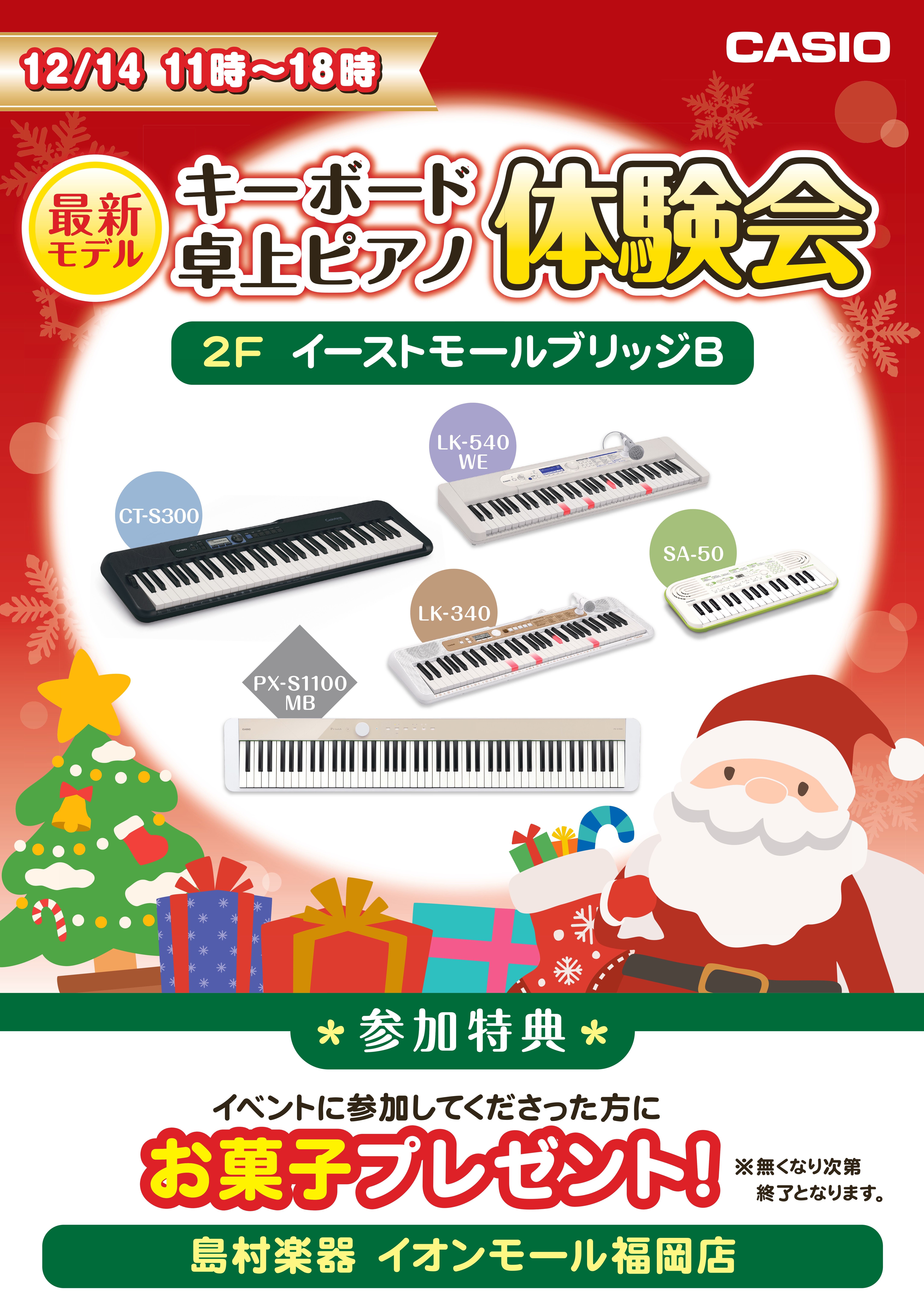 12月14日(日)11:00~18:00にCASIO製品のキーボード・卓上電子ピアノ体験会を開催いたします!