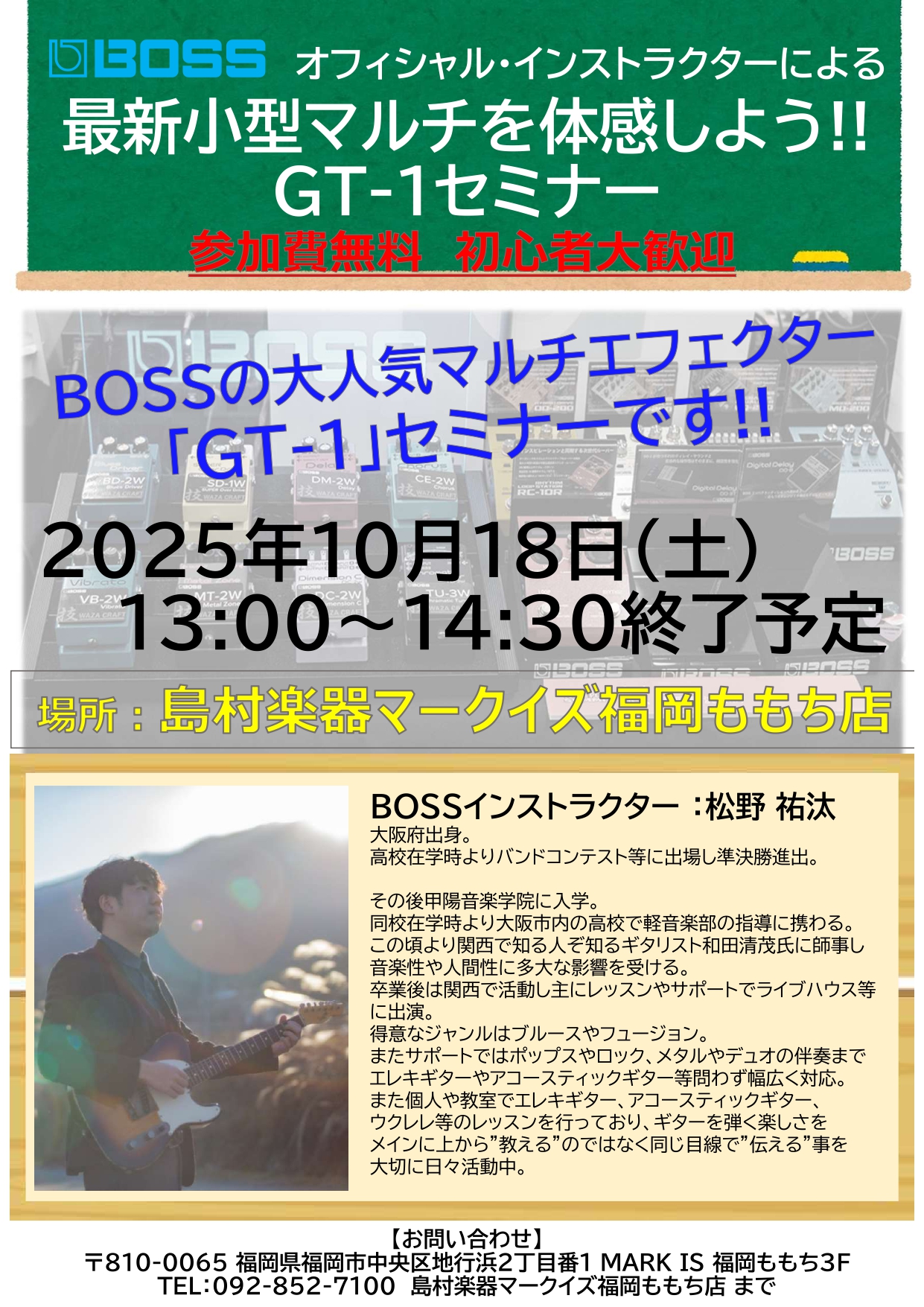 この度当店にて「BOSS / GT-1セミナー」が開催する事になりました