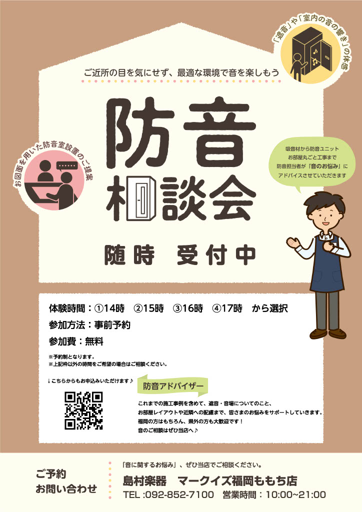 ![今回はKAWAI LHSX18-15(1.7畳 Dr-35) アップライトピアノの練習用・リビングに設置です♪ 無事に設置が完了し安心しております。ご協力いただき、ありがとうございました✨ 【その他の設置事例】 ☆YAMAHA 0.8畳 CONTENTS設置までの流れ設置!防音に関するお悩み、お任せ […]](https://www.shimamura.co.jp/shop/fukuoka-momochi/wp-content/uploads/sites/187/2025/12/20251211-20250221-340098fbea7743ec86eb1fcf7abe24e6.jpg)