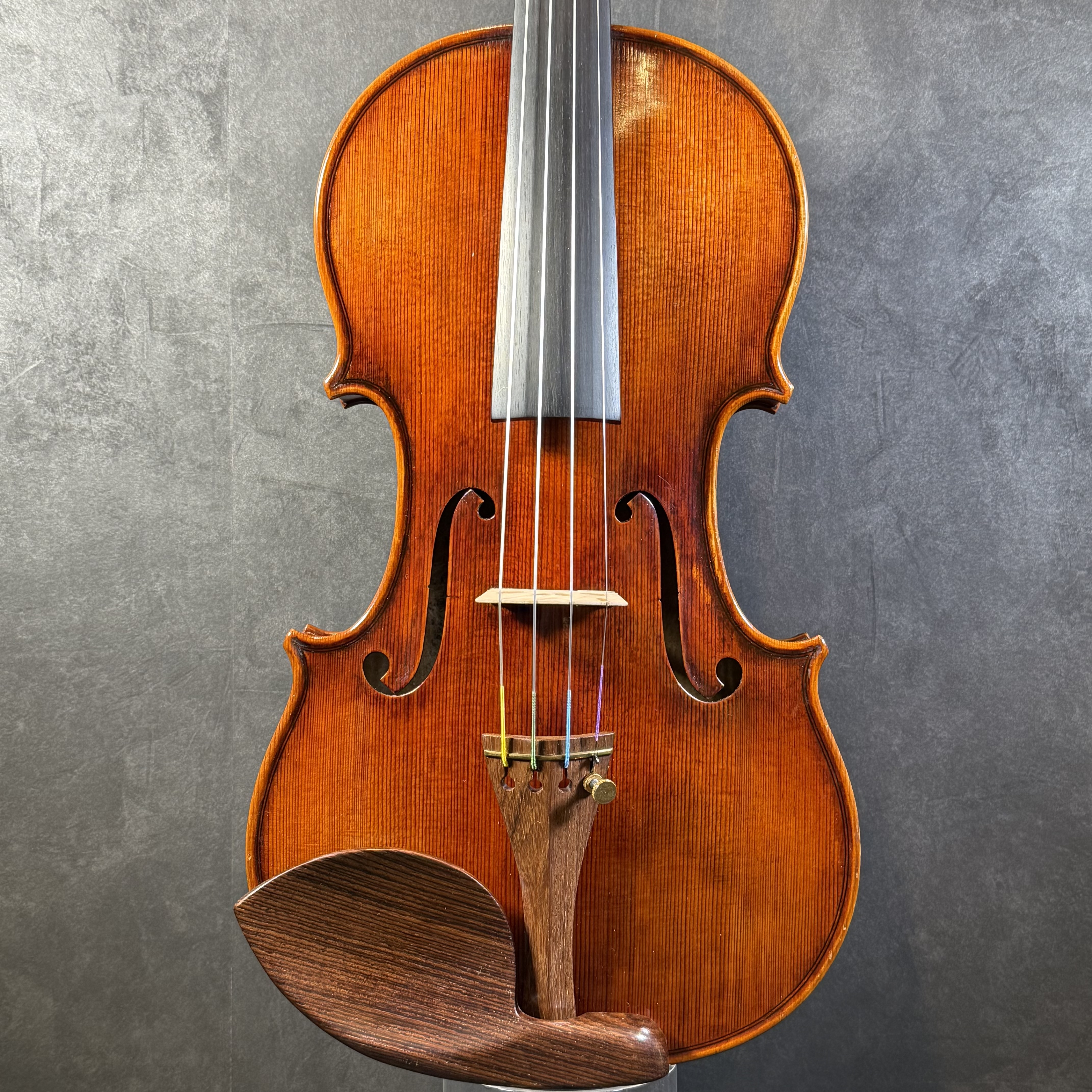 状態も良好、渋みのある見た目と、しっかりとした立ち上がりの音色が印象のヴァイオリン。