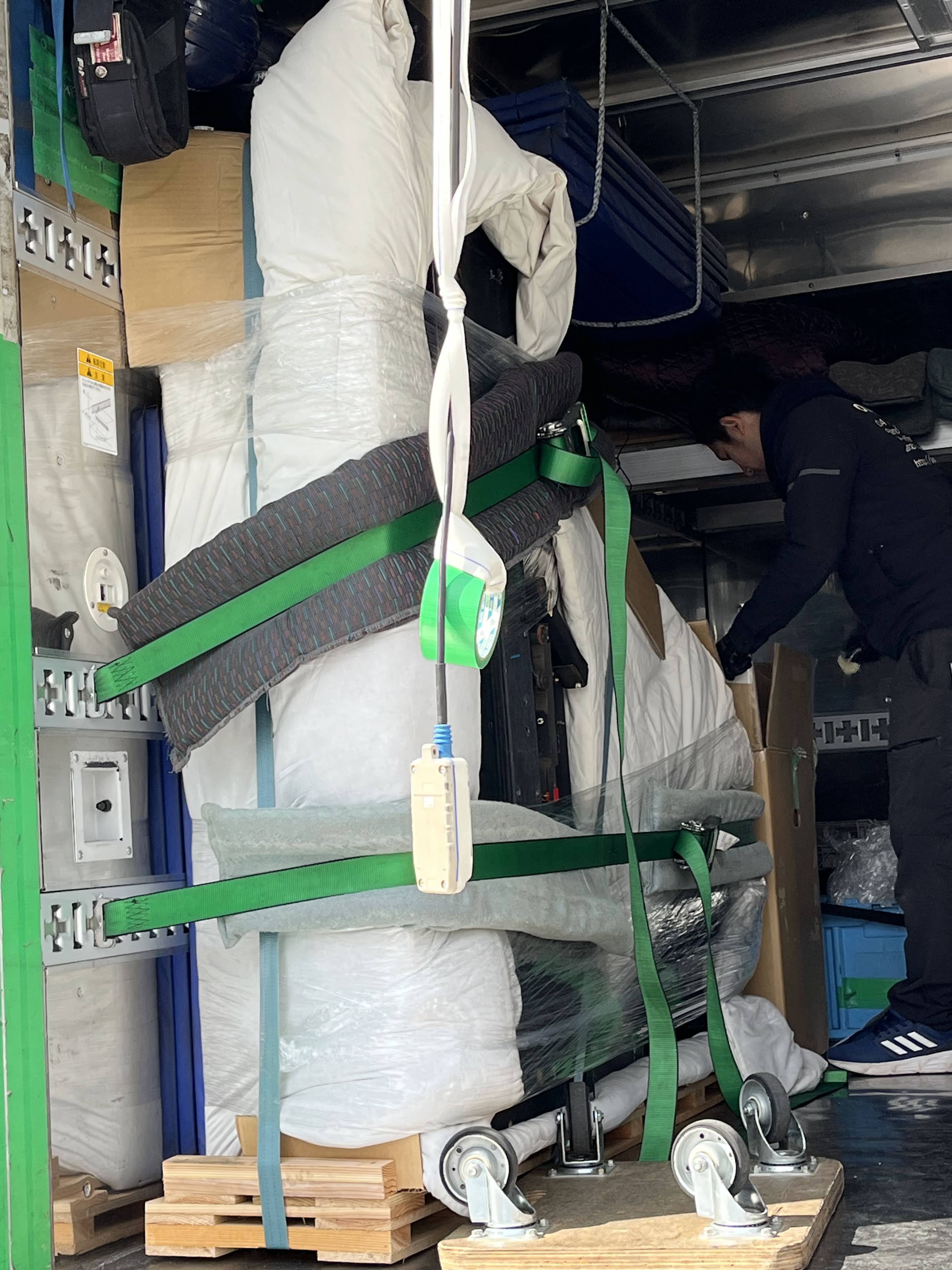 戸建ての1階への設置だったのですが、ご自宅が少し奥まったところにあったので、トラックからピアノを下ろして玄関前まで代車に乗せて運びました。