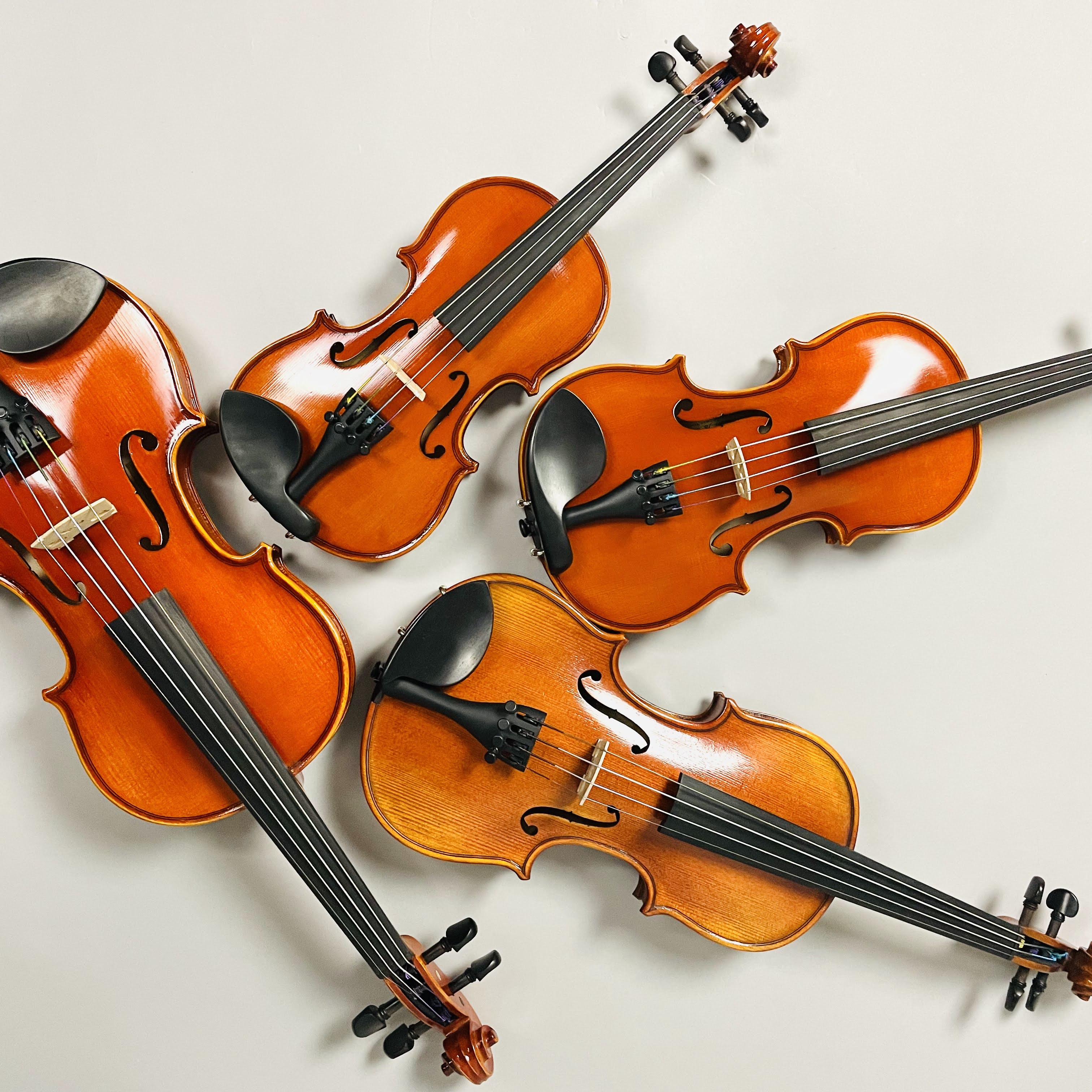 当店では、お子様の分数用ヴァイオリンから、セットヴァイオリン、オールドヴァイオリン、チェロ、弓、弦楽器ケース、弦楽器アクセサリーなど幅広く展示しております。
