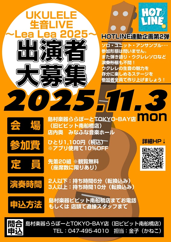 【HOTLINE連動企画イベント第2弾】ウクレレ生音ライブ~Lea Lea 2025~開催!