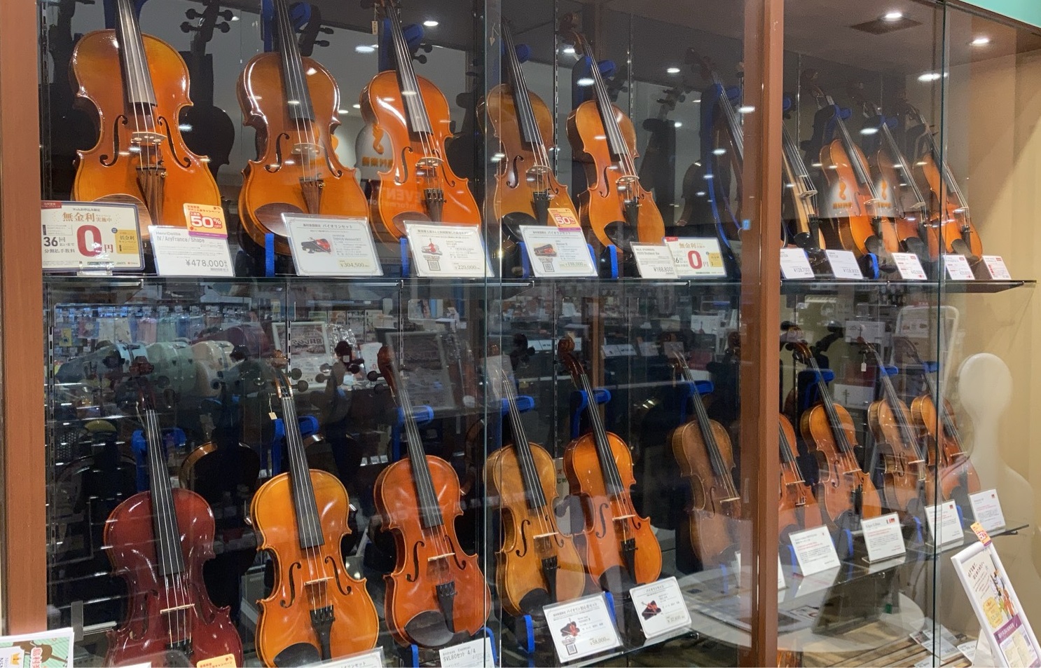 当店の弦楽器アドバイザー・阿部がお子様から大人の方まで、バイオリンを始めてみたい方をサポートします。