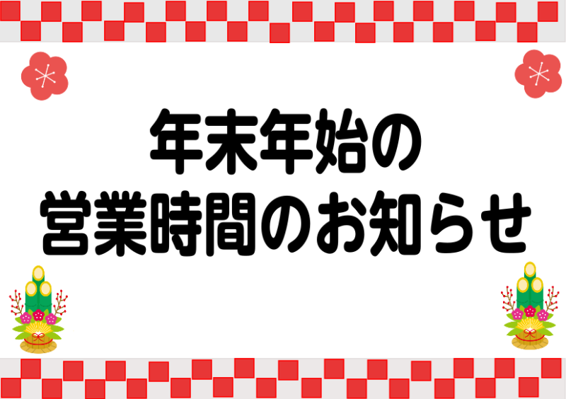 年末年始の営業時間変更に伴い、当店の営業時間のお知らせとなります。
