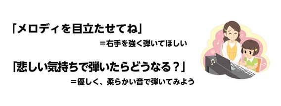 レッスンの中では、演奏記号などを基にその曲にはどんな表現が適しているのか考え、体重の乗せ方を変えたり、指・腕の使い方を教わって音色を変化させる方法を学びます。