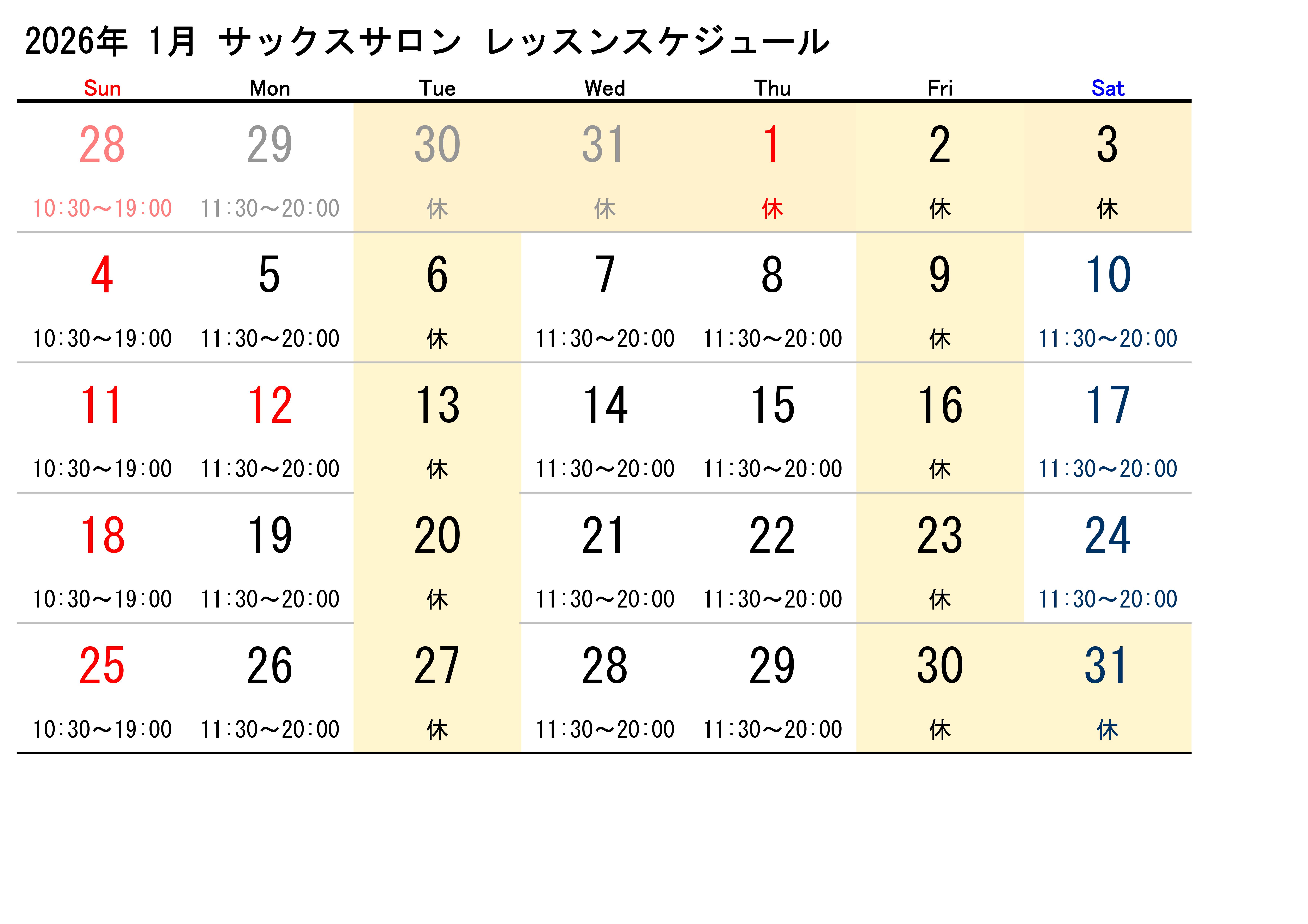 - ※1回のレッスン時間:30分(入れ替え・楽器の準備時間を含む)