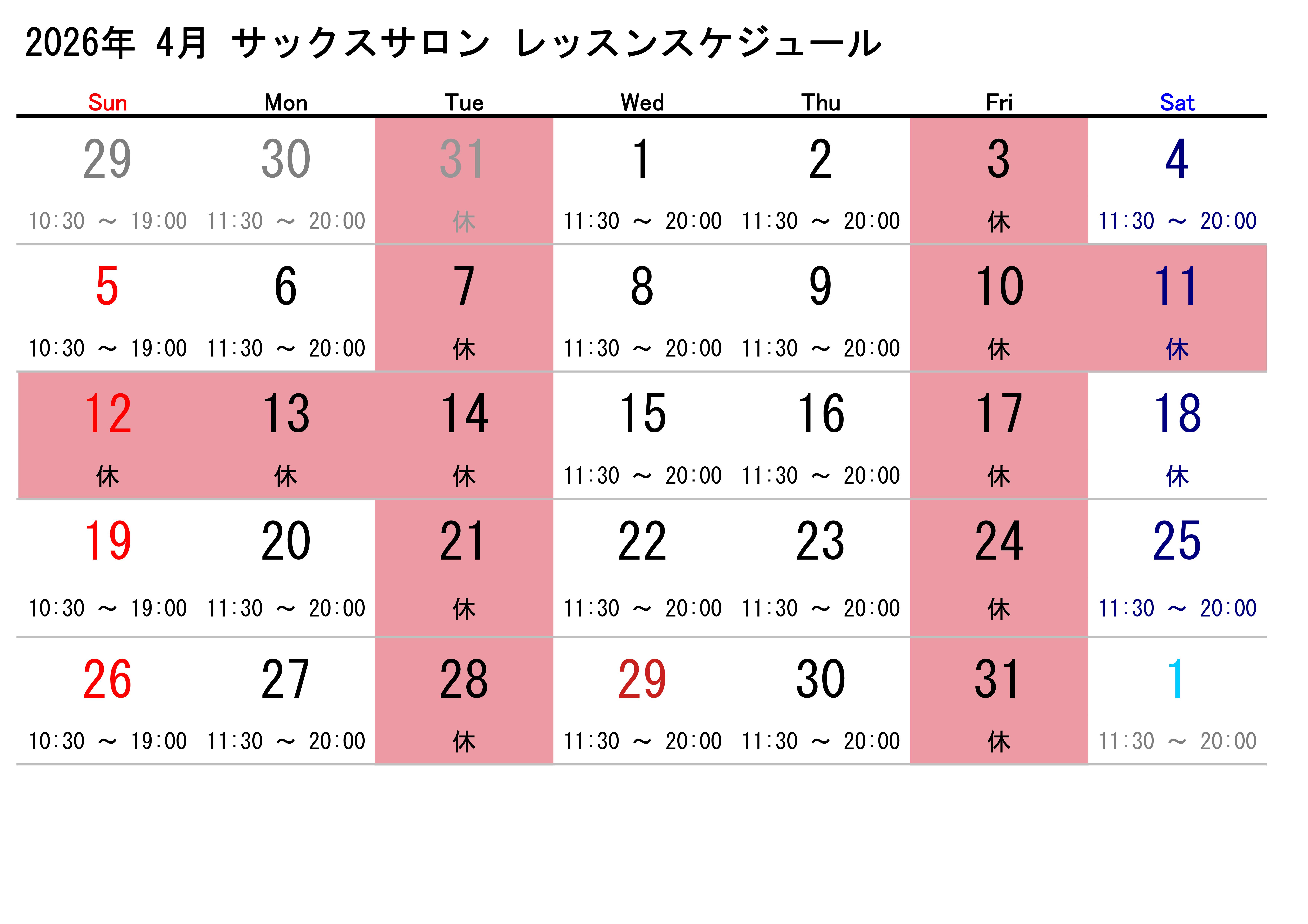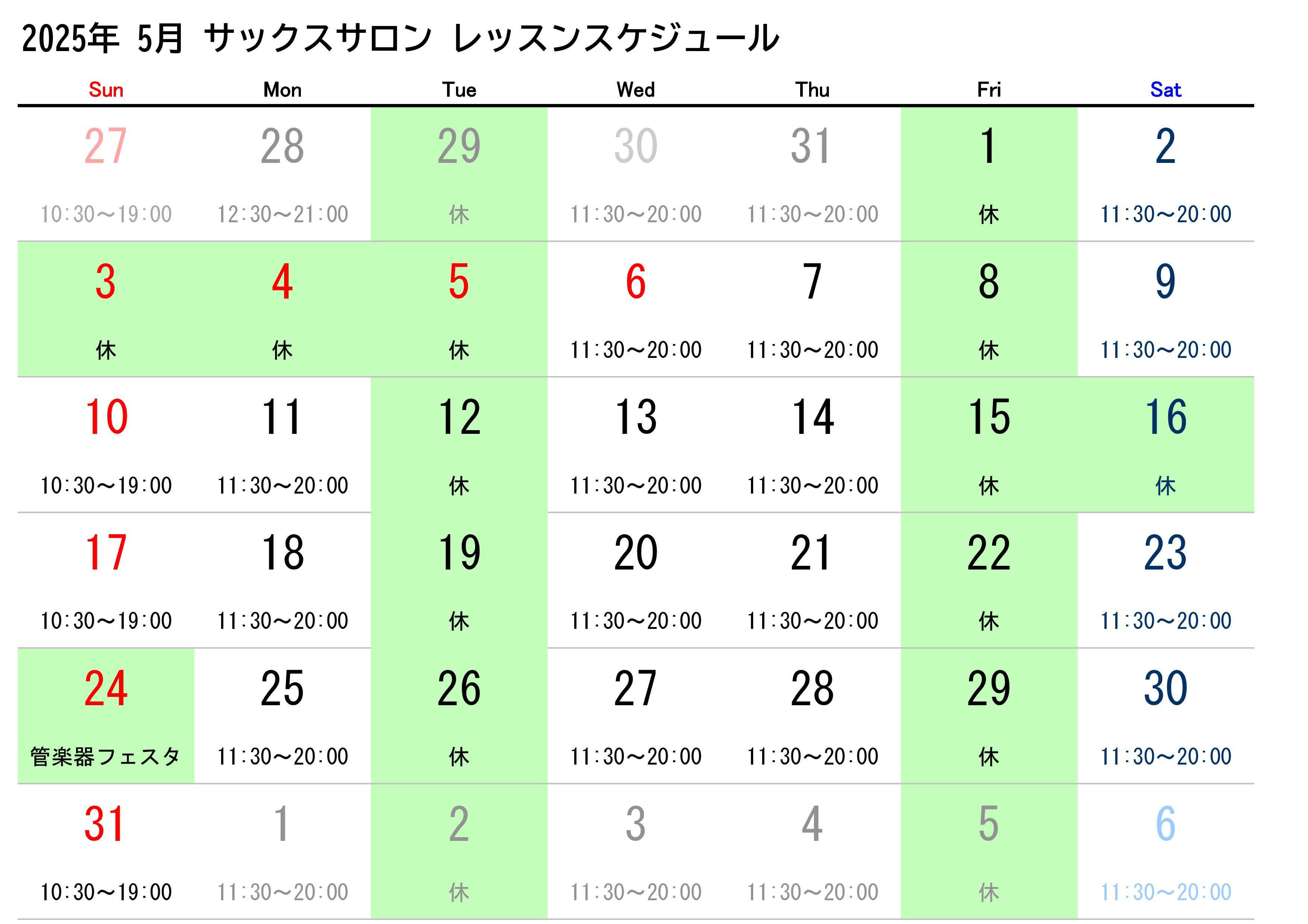 レッスン開講スケジュール