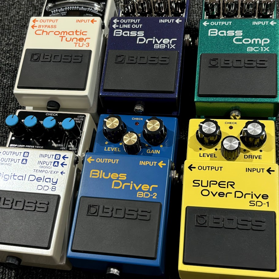 当店では、定番BOSS(ボス)のコンパクトエフェクターをはじめ、直感的に操作できるモデルを多数取り揃えております。