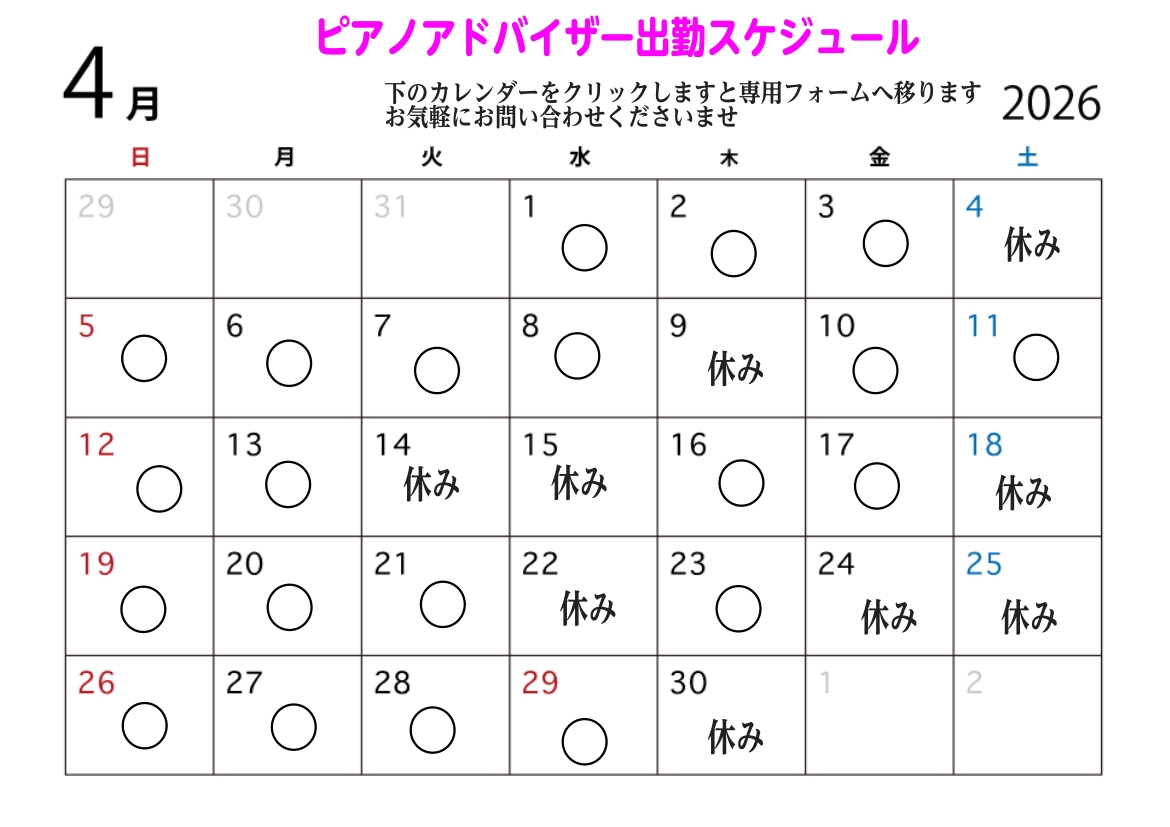 4月ピアノアドバイザー出勤予定日
