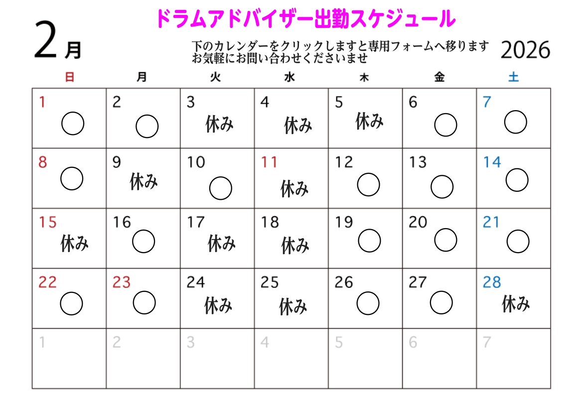 2月ドラムアドバイザー出勤予定日