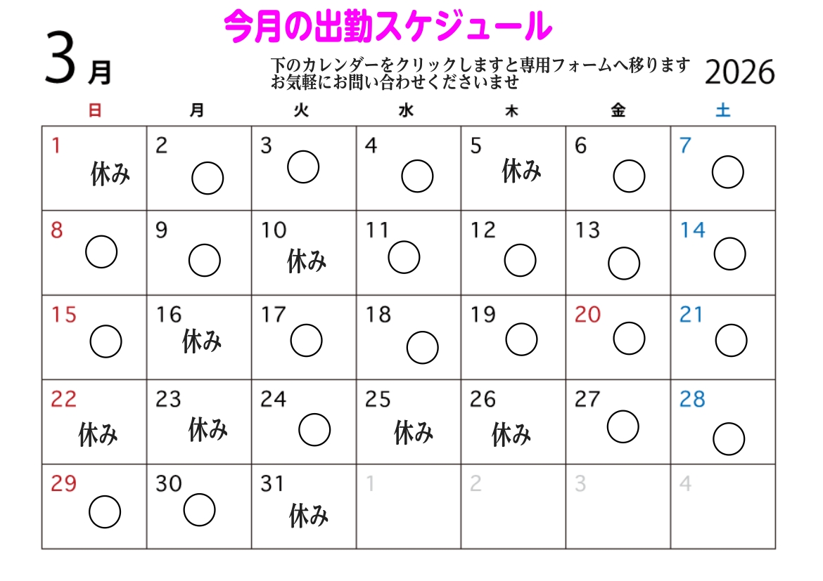 こちらの〇がついている日はドラムアドバイザー村上によるご案内が可能です。