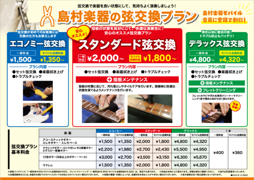 ![*弦交換、メンテナンスもお任せください! ***皆様、弦交換は行っていますか? 弦楽器に欠かせないメンテナンスのひとつが[!!弦交換!!]です。]]どのタイミングで弦交換をするかで音の鳴り、楽器の寿命は大きく変わってきます。]]自分の大切なギターやベース、弦楽器をいつまでも綺麗に保っていたいですよね […]](https://www.shimamura.co.jp/shop/hakata/wp-content/uploads/sites/143/2021/11/20211122-order_shima211122-0091_order_png.jpg)