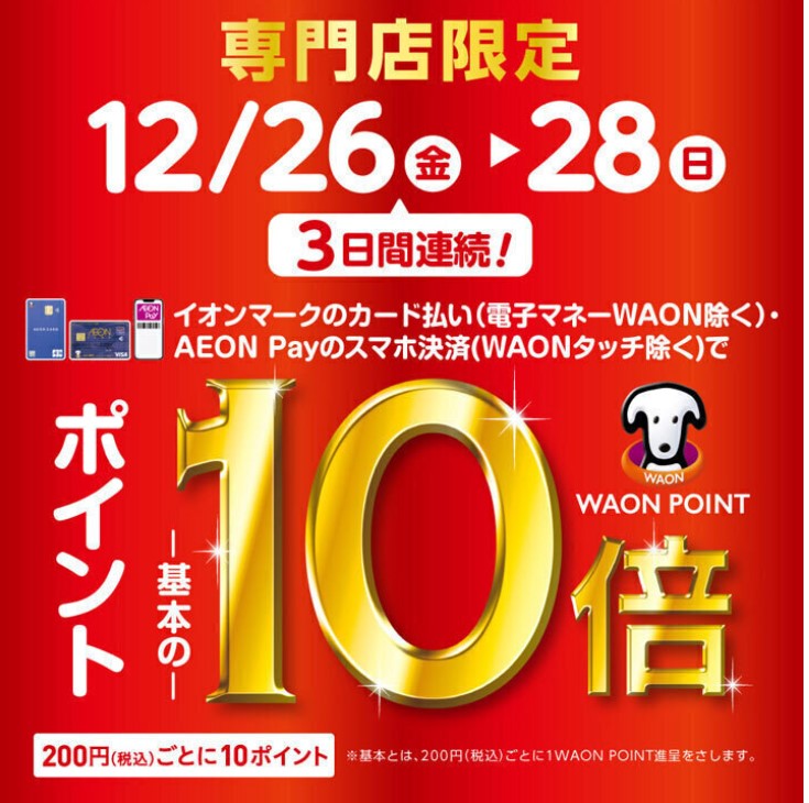 3日間限定!!イオンカードでのお支払いが大変お買い得です!!