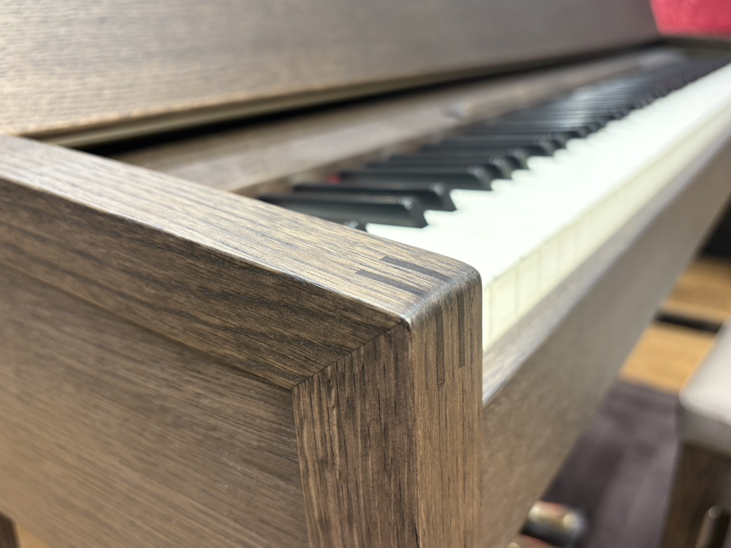 カリモク家具の職人の手によって作られたキャビネットを、ローランドの国内工場でピアノとして組み上げています。