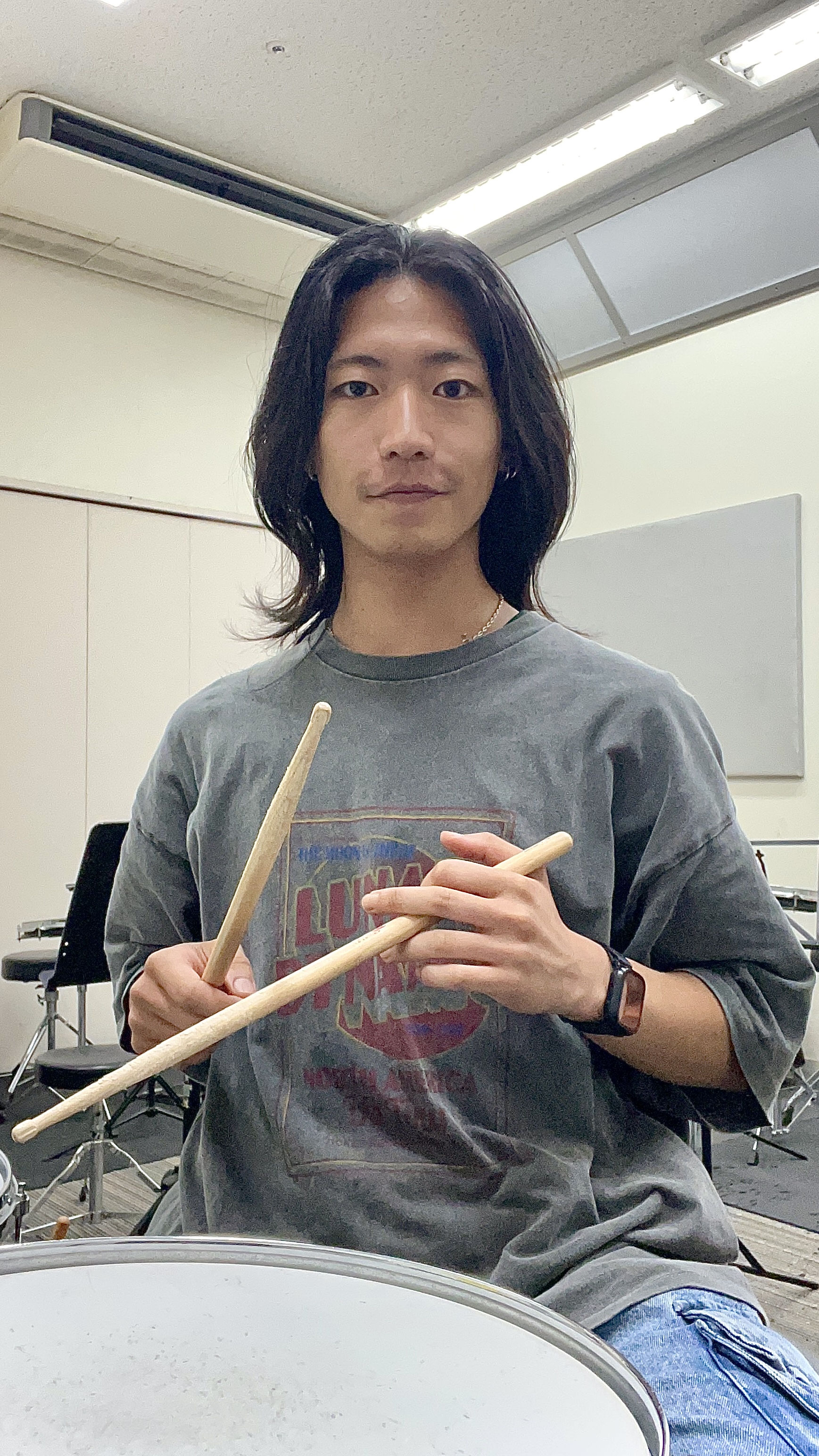 小さい頃から音楽が好きで、ピアノや金管楽器を触っていました。中学生の時に家で流れていたスピッツのライブ映像を見て、「ドラムかっこいい!やってみたい!」と思い始めました。