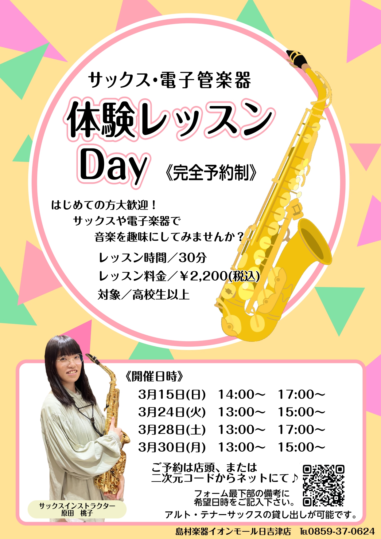 【サックスサロン】体験レッスンDay開催のお知らせ【3月】