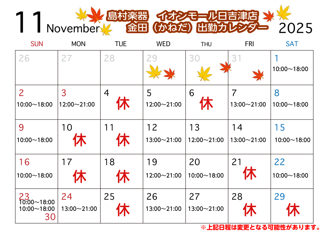 | 場所 | 島村楽器イオンモール日吉津店 |