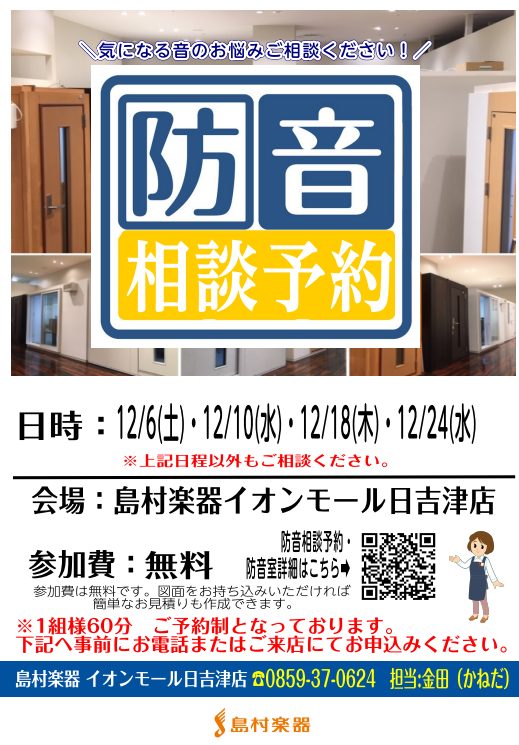 【防音室総合案内】組み立て型防音室2台常設展示中!楽器練習、録音、テレワーク 等をもっと快適に。防音室の島村楽器イオンモール日吉津店へ!【鳥取・倉吉・米子・境港】【安来・松江・出雲・大田】2025年11/30更新