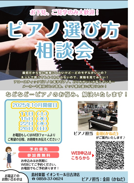 【電子ピアノ・アップライトピアノ総合案内一覧】鳥取 米子・境港・米子・松江・出雲、でピアノを探すなら島村楽器イオンモール日吉津店2025年10/19更新