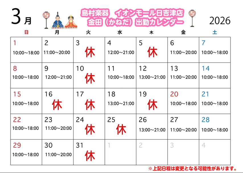 開催期間 2026年 3月7日(土)~4月19日(日) 皆さんこんにちは!この度島村楽器イオンモール日吉津店では「新生活応援フェア」を開催中です!期間中ご成約の方へのプレゼントなどもご用意しております。皆様のご来店を心よりお待ちしております! CONTENTS🔳ピアノに詳しいスタッフがご案内いたしま […]