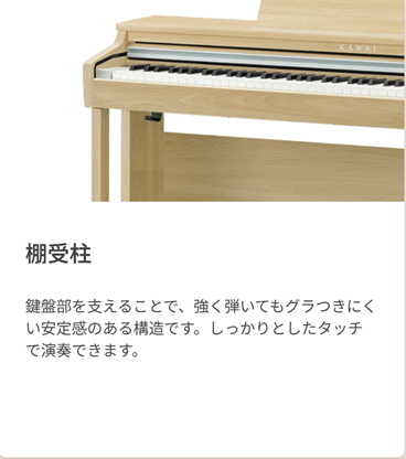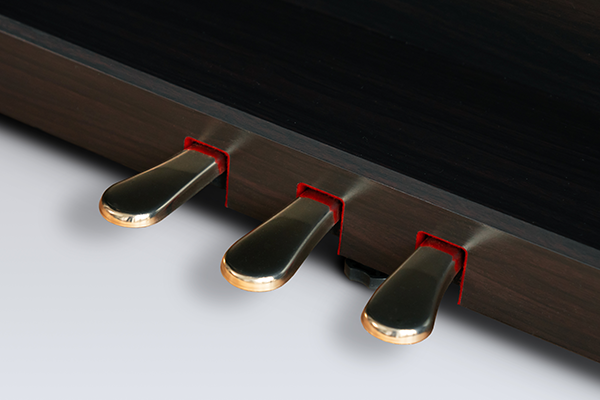 3本ペダル全てに光センサーを搭載。ぐらつき・がたつきのない安定感のある踏み心地になりました。踏み始めから足を離すまで、ほどよい抵抗感もありペダリングの練習にもなります。 また、ペダルの床からの高さ、鍵盤との位置関係がアコースティックピアノとほぼ同じ!意外と電子ピアノにはペダルのサイズが違ったり床からの距離が違うものが存在する中、このこだわりはピアノメーカーならでは。