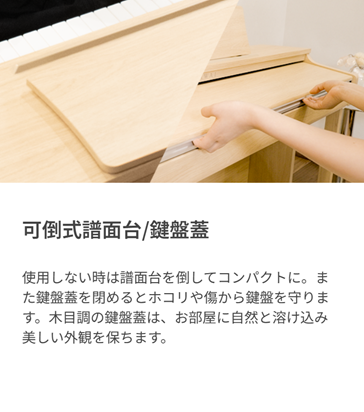 とくにCX302の鍵盤表面は象牙調仕上げ(アイボリータッチ)となっており、鍵盤が自然と指に吸い付くような質感で弾き心地も快適です。