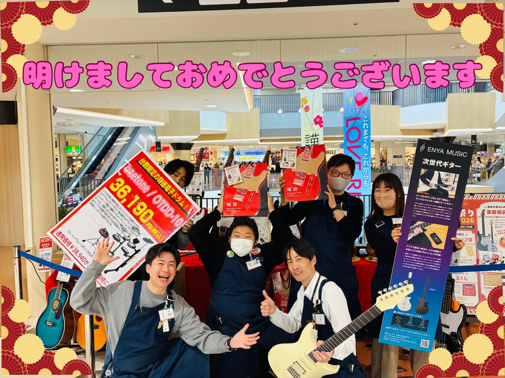 てぬぐいブランド「かまわぬ」とコラボした、ギター弦デザインのてぬぐい付きの「楽器福袋」!