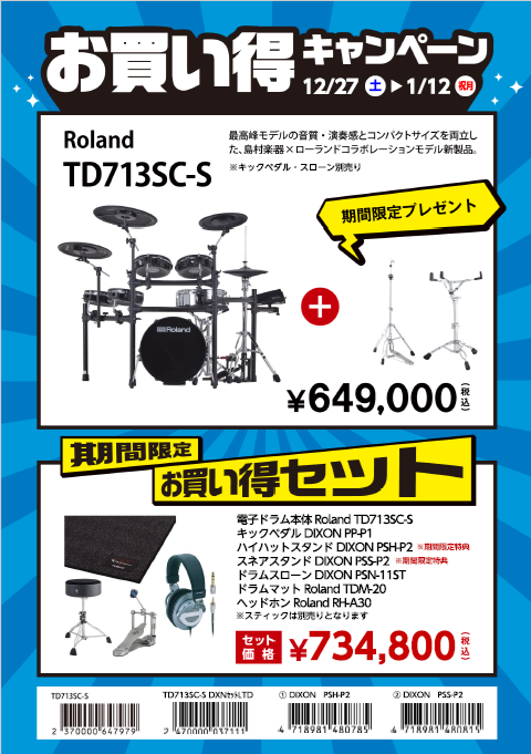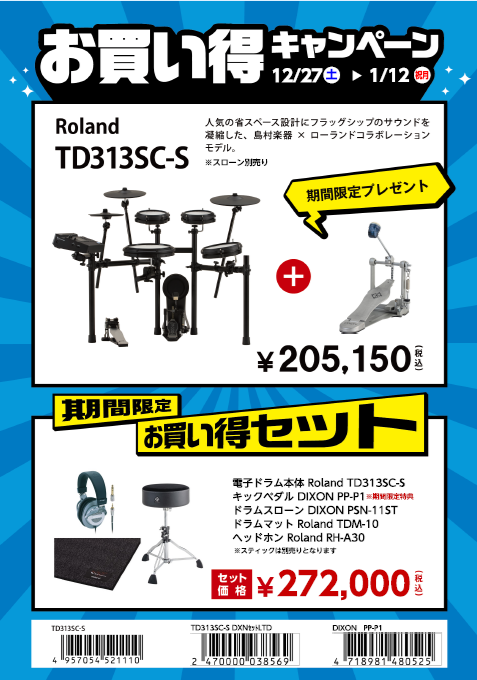 【島村楽器限定】旧モデルにつき展示品限りの大特価!ドラム椅子・スティック・キックペダルもプレゼント!TD-17SC-S