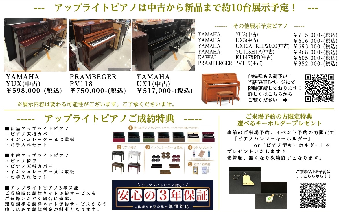 【島村楽器 神戸北店】アップライトピアノ展示会開催のご案内