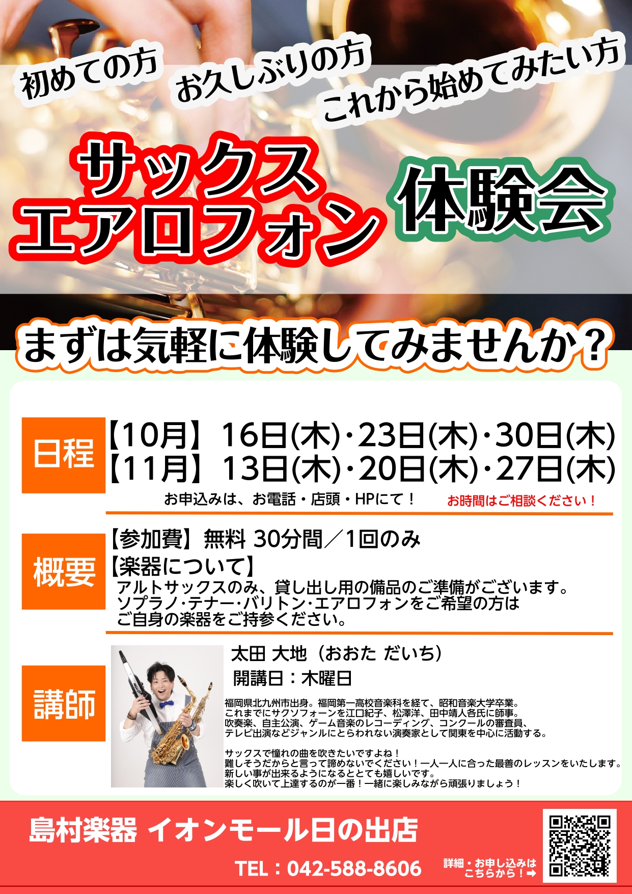 【音楽教室・新規開講!】サックス&デジタル管楽器(エアロフォン)コース 体験会実施中!