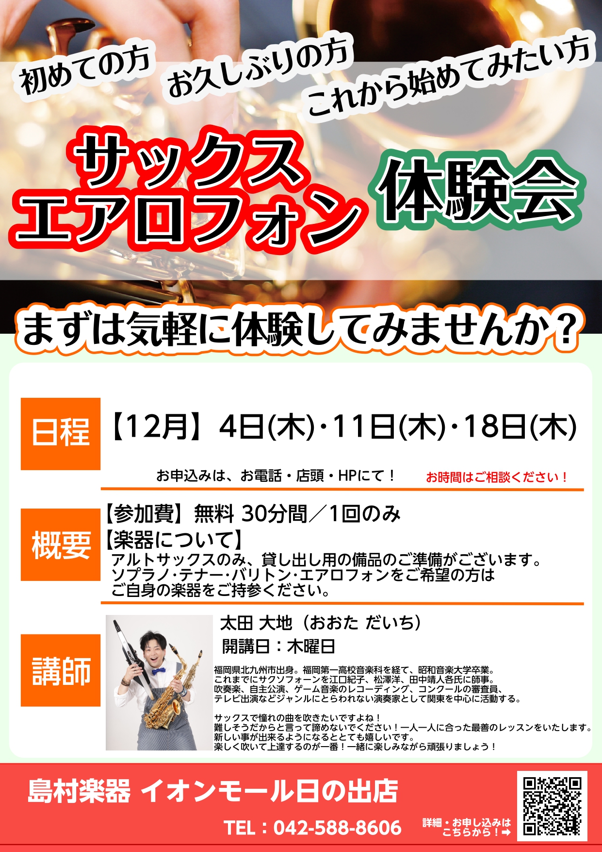 【音楽教室・新規開講!】サックス&デジタル管楽器(エアロフォン)コース 体験会実施中!