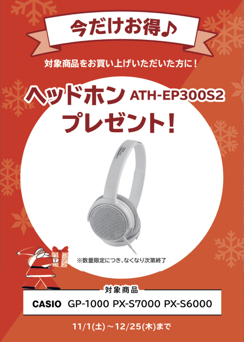 11/1(土)より開催されている「電子ピアノフェア」の素敵な特典内容についてご説明させていただきます。