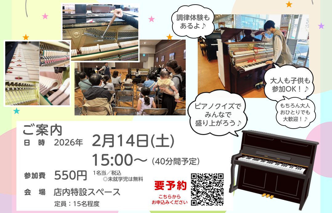 2026年2月14日(土)ピアノふしぎ体験会開催します!
