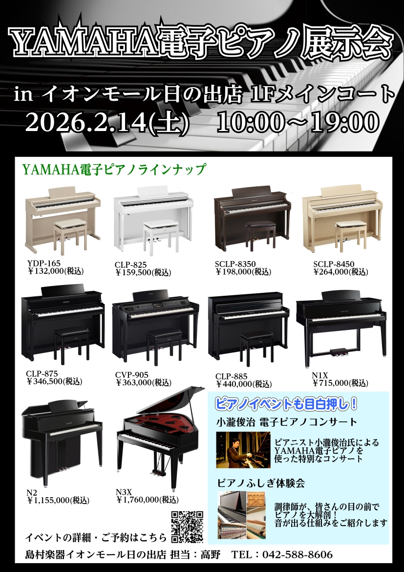 2/14(土)、イオンモール日の出店1階 メインコートにて「YAMAHA電子ピアノ展示会」を開催致します!