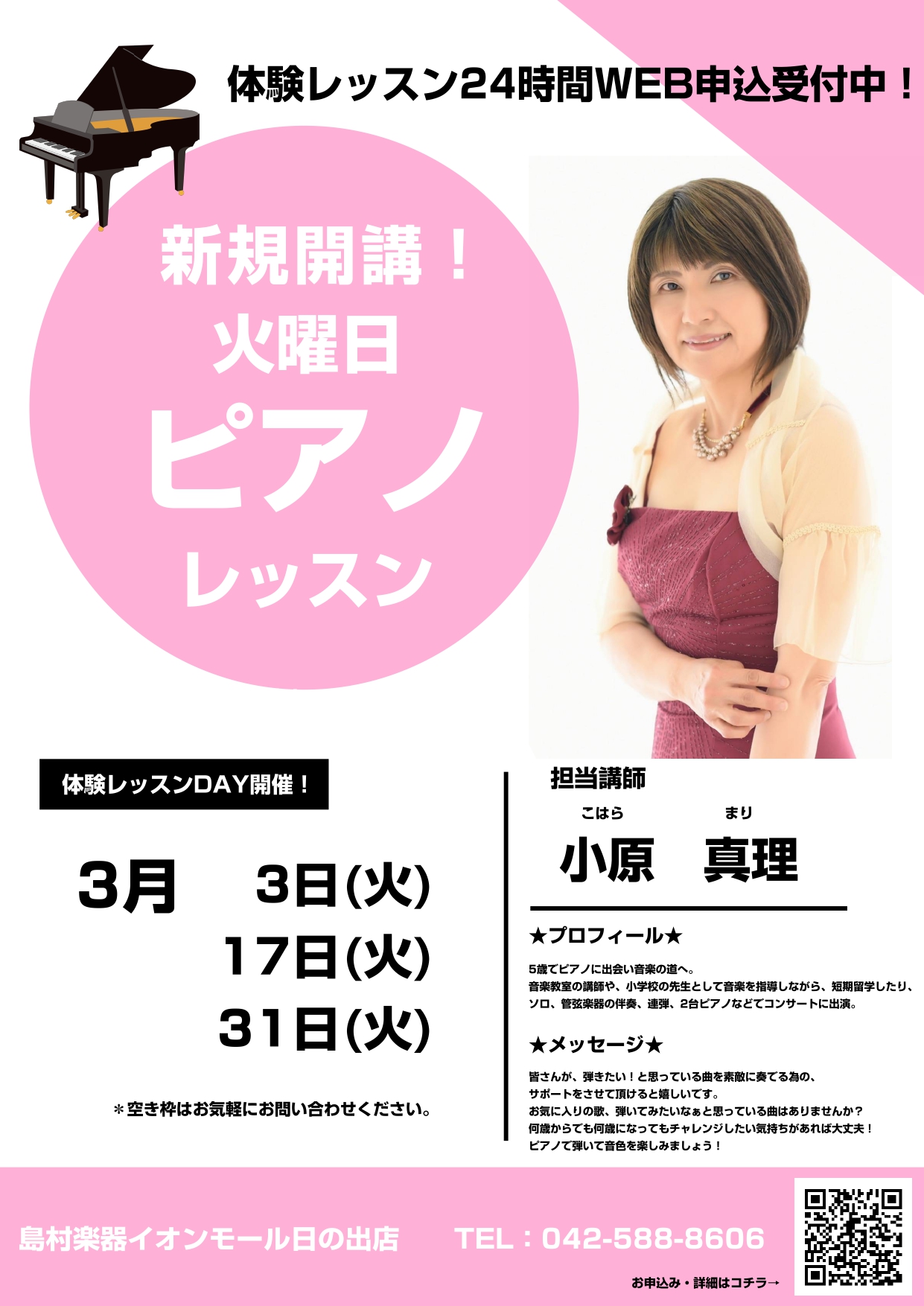 この度、大人気のピアノ教室が火曜日に新規開講いたしました!