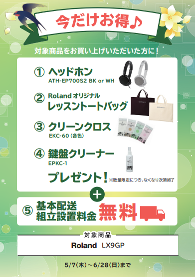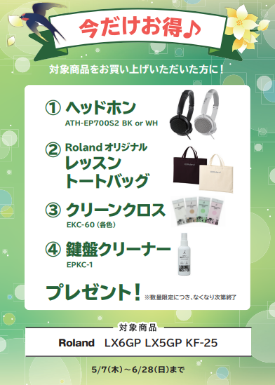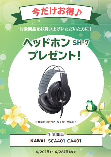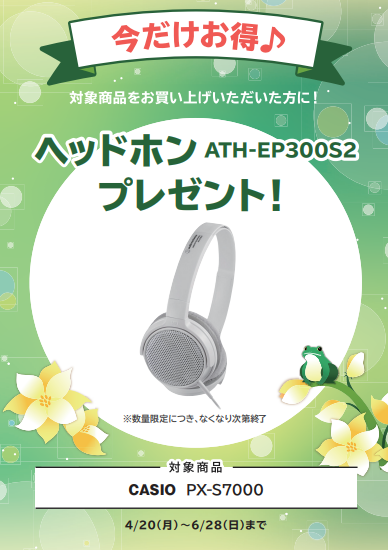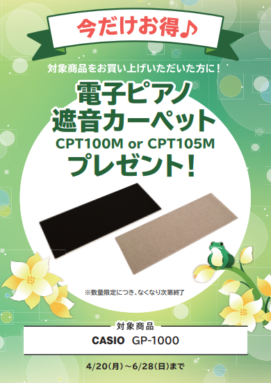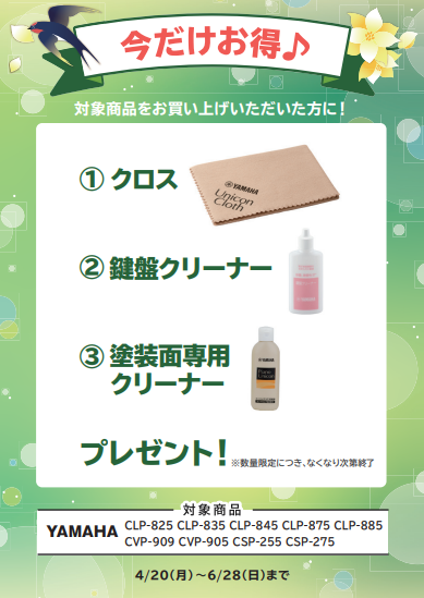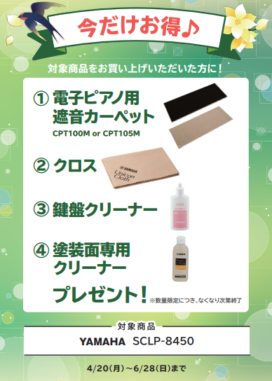 4/20(月)より開催されている「電子ピアノフェア」の素敵な特典内容についてご説明させていただきます。