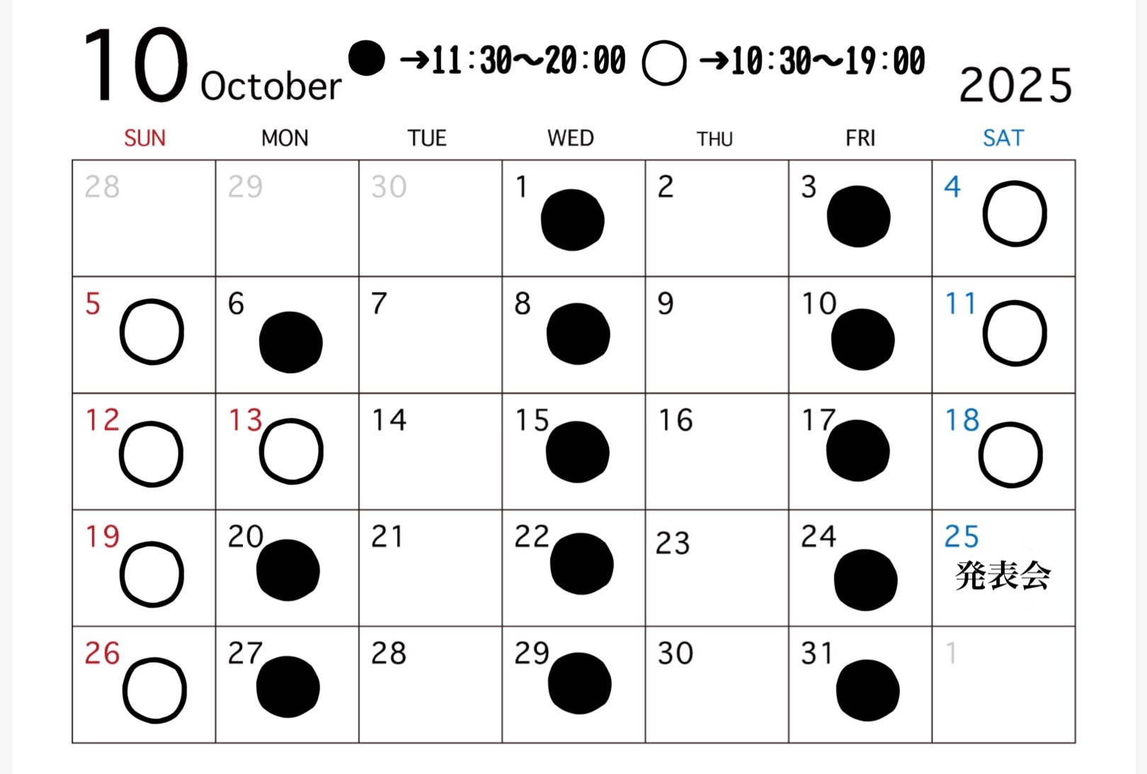 〇と●が開講日になります。ご都合の良い時間をご確認頂きご予約をお願いいたします♪