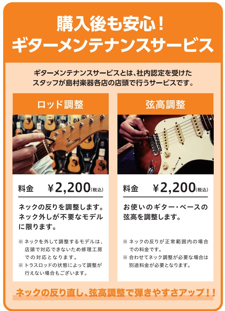 ギター/ベースのメンテナンスお任せください!