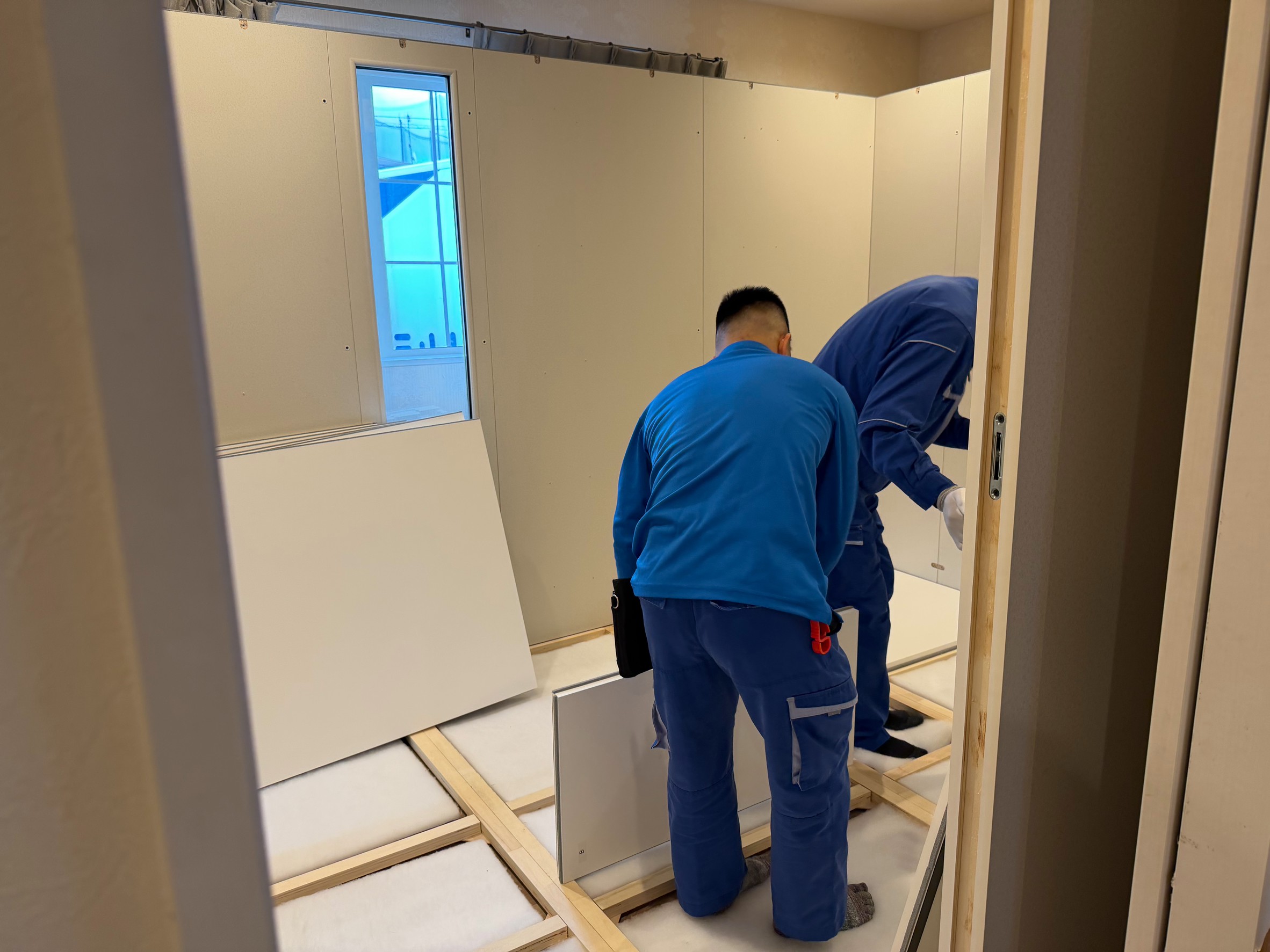 防音室は内側から組み立てが可能なため、問題なく施工できました。