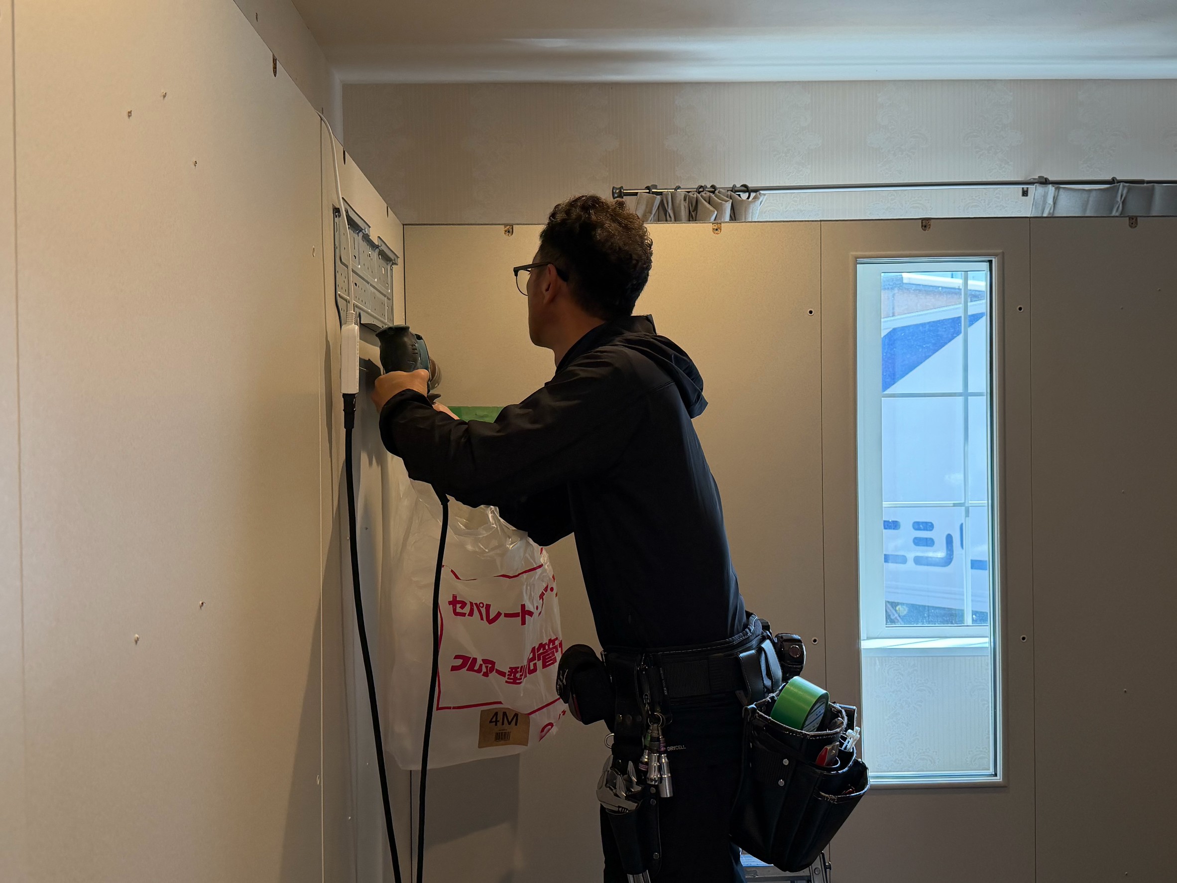 壁パネルの取り付けに合わせ、フィックス窓の位置をK様のご要望に合わせて微調整。