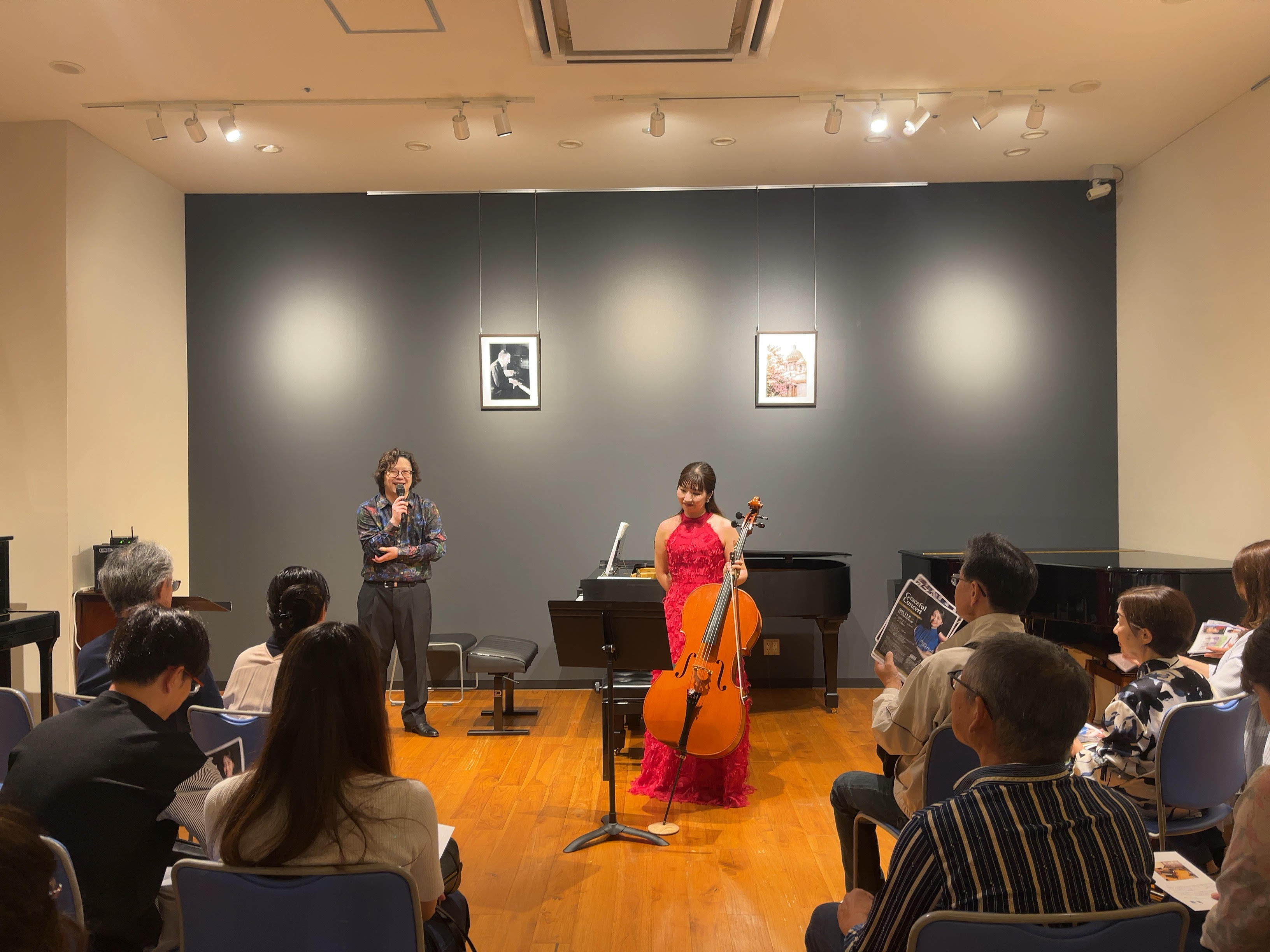 先日、当店のピアノショールームで15回目となる「Classical Concert」を開催いたしました。今回の出演は、チェリストの向井真帆さんと、ピアニストの藤本宏平さん。「オール・ラフマニノフ・プログラム」ということで、ラフマニノフの作品の数々を演奏していただきました。