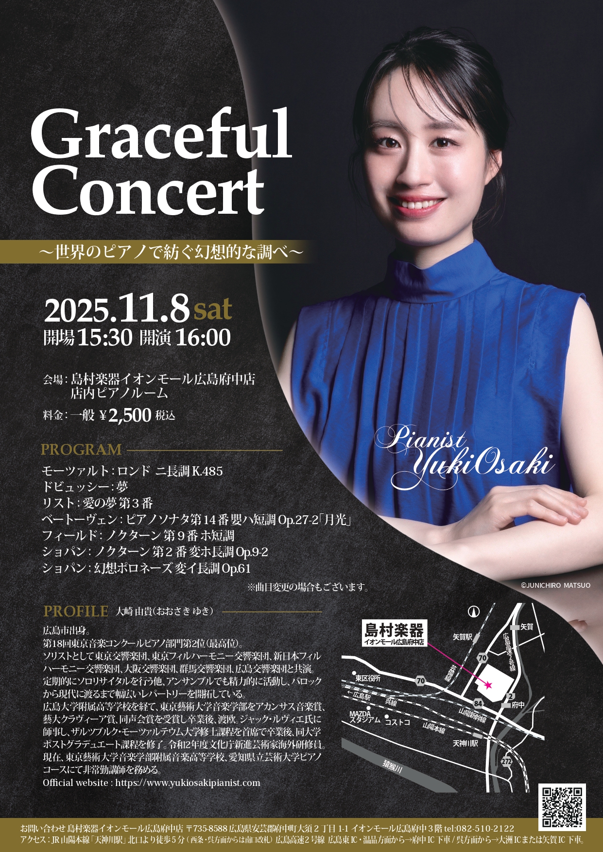 現在は東京を中心に活躍されていますが、広島がご出身の大崎さん。また来年も演奏にお越しいただますよう、今からとても楽しみにしております!