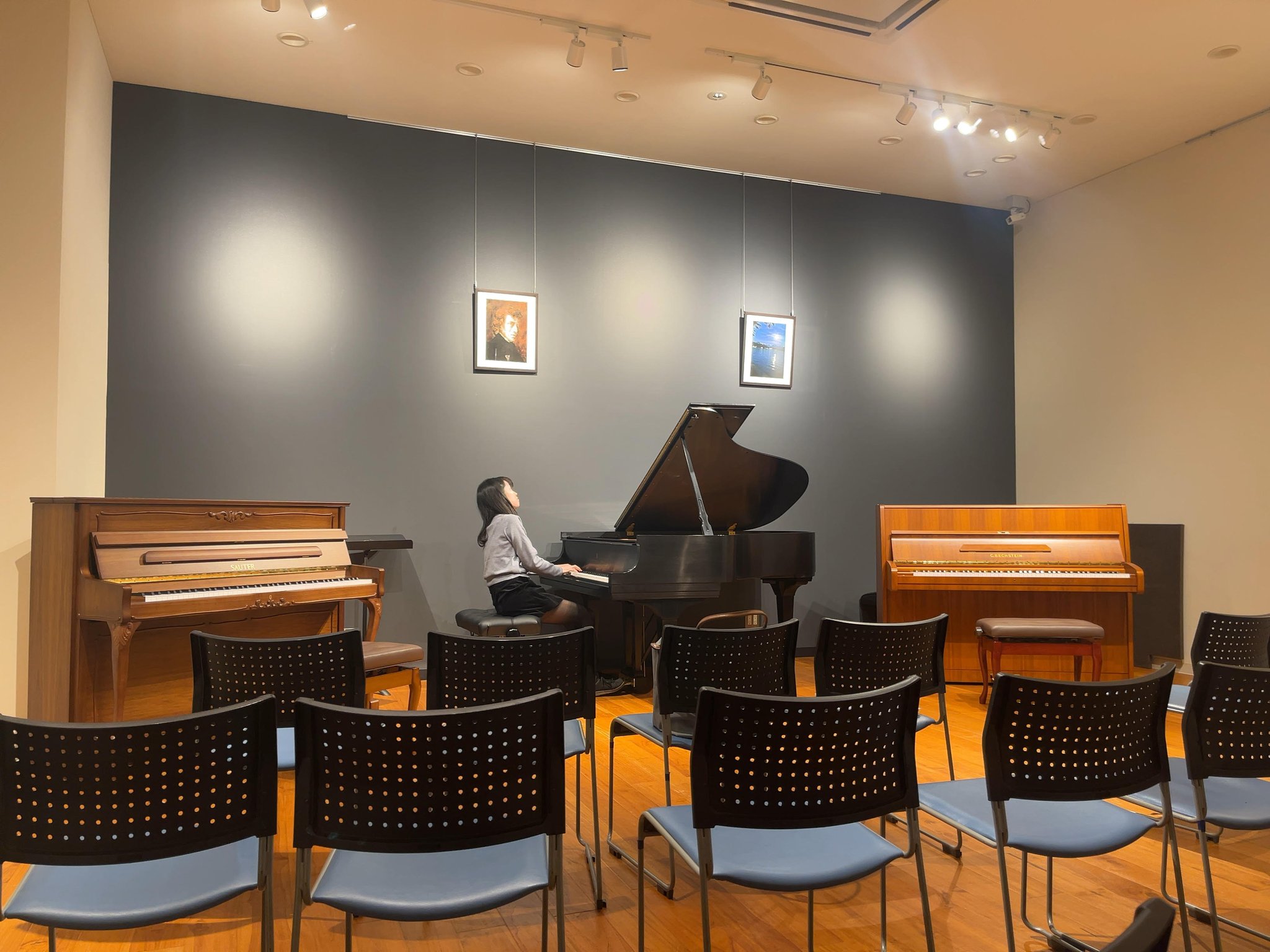 これまでのコンサートとは少し趣向を変えて、副題のとおり複数のピアノを演奏いただく特別なステージ。昨年2024年に大崎由貴さんに初めて当店のコンサートに出演頂いた際に、作曲家や作品ごとに鮮やかに変化する音色に魅了されて…その音色をまた複数のピアノで聴きたい!とご依頼したところ、ありがたいことに、快くお引き受けいただきました。