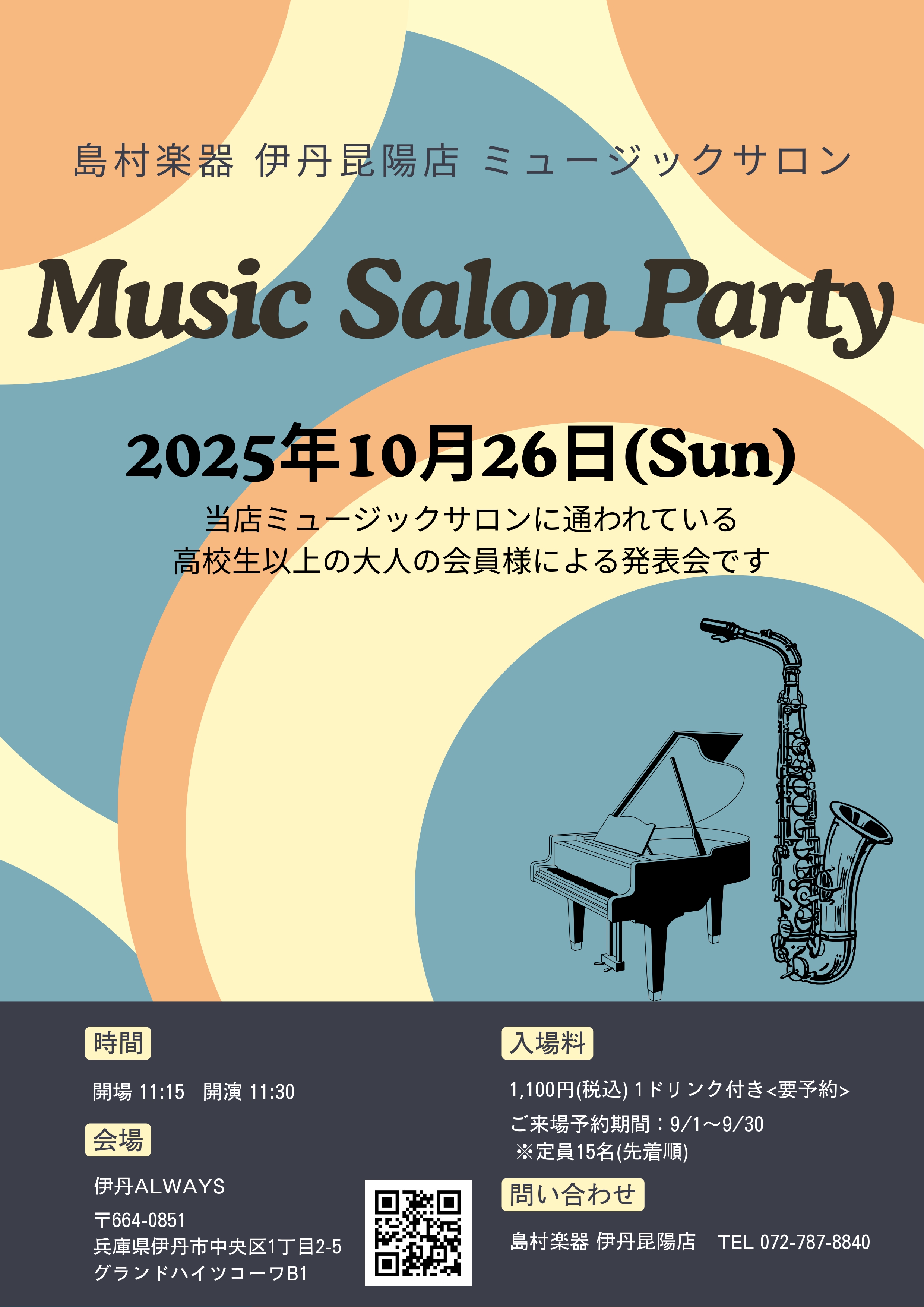 今年10月に開催した、当店ミュージックサロン会員様による発表会『Music Salon Party2025』のレポートをお届けいたします!