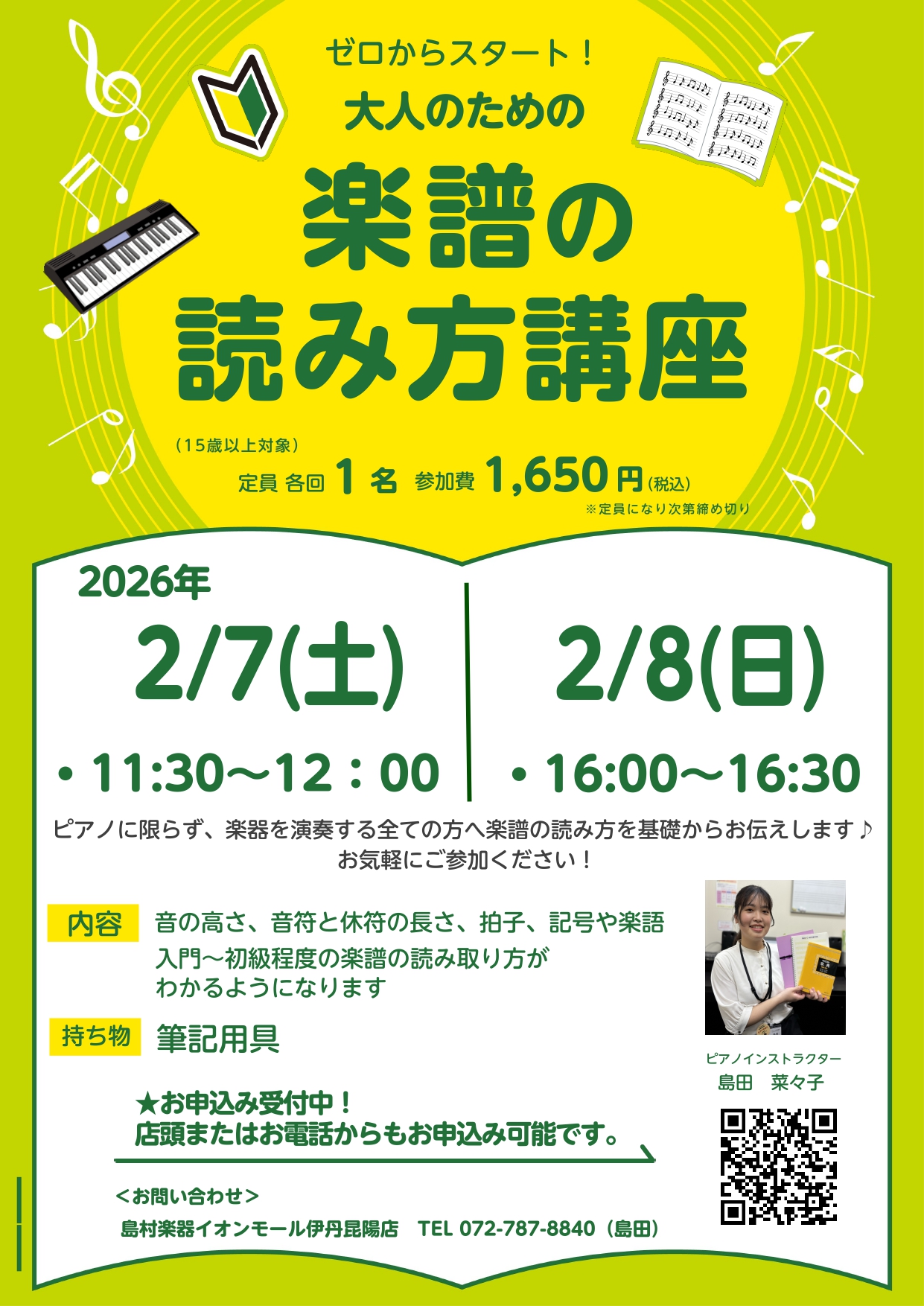 ![皆さんこんにちは!ピアノインストラクターの島田です。 楽器を演奏されている方や、これから楽器を始めたい方、こんなお悩みございませんか? この度、そんな皆様のための「楽譜の読み方講座」を開催いたします! ぜひお気軽にご参加ください♪ CONTENTS概要お申込み担当インストラクターお問い合わせ概要 お […]](https://www.shimamura.co.jp/shop/itamikoya/wp-content/uploads/sites/145/2026/01/20260104-3b72aa5772ec88ddbb954a3f5619fbb5.jpg)